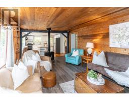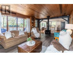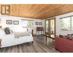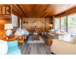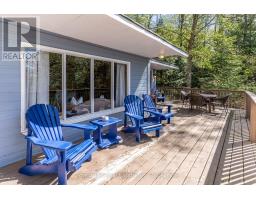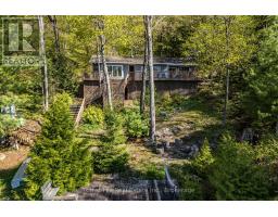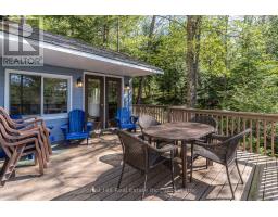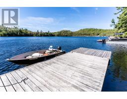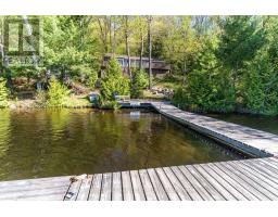 Charming waterfront retreat on Raven Lake. Fully Furnished! Welcome to your private lakeside paradise with 141 feet of waterfront on sought-after Raven Lake. Set in a tranquil bay, just a short 1-minute boat ride from your own private boat slip, this fully furnished 3-bedroom cottage + large bunkie offers the perfect blend of rustic charm and modern comfort.The main cottage features an open-concept layout with stunning lake views from the kitchen and living room with a walkout to a large sundeck. The primary bedroom is executive-size, and all bedrooms boast new laminate flooring (installed 2 years ago). A quaint stream with a picturesque bridge runs through the property from spring until late July, adding to the serene ambiance. Professionally rebuilt over the last 25 years and supported by solid concrete and wooden piers. Electric baseboard heaters and a cozy wood stove provide warmth throughout. A 3-piece bathroom with laundry, fully equipped kitchen and pine accents enhance the cottage vibe. There is a water purification system (with UV and reverse osmosis) and septic system. High speed internet is available, and newer appliances and furnishings are included. Outdoors, enjoy a large deck wrapping around the front and sides of the cottage, perfect for soaking in gorgeous lake views and nature. The property includes a cedar sauna in the pump house, a spacious workshop man cave with fridge and workbench and a large wooden L-shaped dock with a swim ladder. Bonus: Ownership includes a transferable membership and dock slip with Raven Lake Dock Association (valued at ~$10,000 & annual fees of $700). Negotiable: Trailer and 2006 20 ft Pontoon Boat, Make/Model is Misty Harbor, 50 HP outboard motor in very good condition with newer upholstery on seats in 2022. Only 5 minutes to Dorset, 30 min to Huntsville & Minden and 45 min to Bracebridge and Algonquin Park. This turn-key property is ready for you - just bring your suitcase and start your memories here! (id:46441)