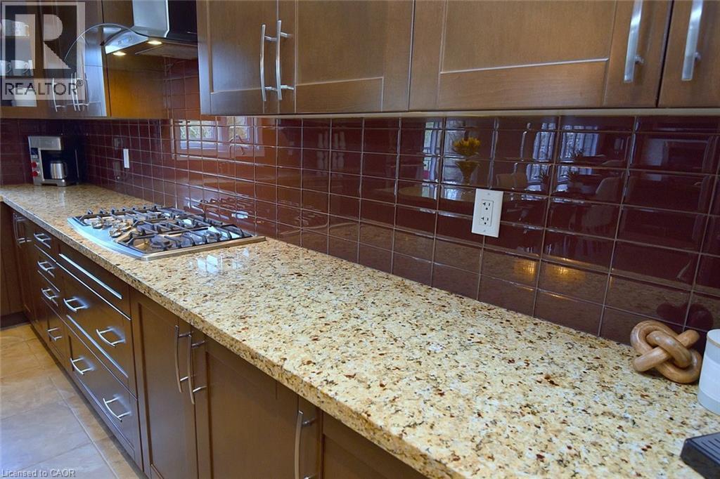 Stunning 4-bed home in Ancaster's coveted Parkview Heights with an incredible backyard oasis featuring a heated inground saltwater pool. hot tub, tiki bar, covered decks, and sunny patios overlooking greenspace, pond, and woods. Inside, a soaring foyer leads to the chef's kitchen with maple cabinetry, gas cooktop, double wall ovens, pantry, and 8' island, open to the breakfast area and covered deck. The family room offers a modern gas fireplace, built-ins, hardwood floors, and automated blinds. Dining room with tray ceiling, office with California shutters, laundry, and powder room complete the main level. The spacious principal suite includes a walk-in closet and ensuite with glass shower, separate tub, and double vanities plus serene views. Three additional bedrooms and full bath serve the family. The finished walk-out basement adds a second kitchen, large family room with gas fireplace, gym area, 3-pc bath, and storage. Outdoor living shines with multiple covered spaces and a resort-style pool and hot tub. A rare offering in a premium location .RSA Don't delay, arrange your viewing today! (id:46441)