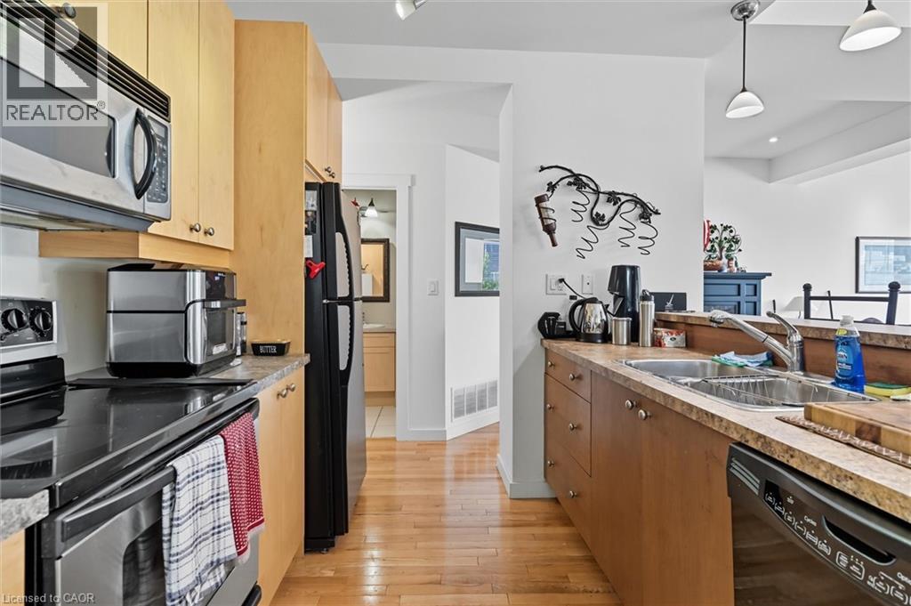 $425 MonthlyWelcome to the largest unit at Carnegie Lofts – a stunning blend of heritage charm and modern design! This one-of-a-kind 1- bedroom (easily divided into multiple rooms), 2-storey loft plus basement, crafted by the highly respected local builder, Phelps Homes, is a true standout and the initial show-home of Carnegie Lofts. From the moment you enter through your private, street-level entrance, you'll be greeted by a spacious 8 x 7 foyer—something you won't find in any other unit. The open-concept main floor features soaring 10-foot ceilings, gleaming hardwood floors, and a contemporary kitchen with breakfast bar and pendant lighting, overlooking the living area -perfect for cooking and entertaining. A convenient 2-piece powder room rounds out the space, while large windows flood the area with natural light, highlighting the unique character and warmth throughout. Upstairs, you’ll find an oversized loft bedroom -an incredible retreat. Be impressed by the huge 10 x 8 walk-in closet, which was once the building’s elevator shaft -it still features the original antique wood elevator doors! The spacious 4-piece ensuite with soaker tub and separate shower, and the tucked-away laundry area make the upper level as functional as it is stylish. Need extra space? There's also a full basement that offers plenty of room for storage and the potential to finish it into a rec room or additional bedrooms. As a resident, you’ll have access to a beautifully landscaped courtyard with BBQs and seating -perfect for summer days. Enjoy the ultimate convenience of living just steps from downtown Grimsby’s shops, restaurants, and parks, with the Lake only a short distance away. Plus, with quick access to the QEW, commuting couldn’t be easier. This is your chance to own a truly unique piece of Grimsby’s history, in the largest unit available at Carnegie Lofts. Don’t miss out on this rare gem! (id:46441)