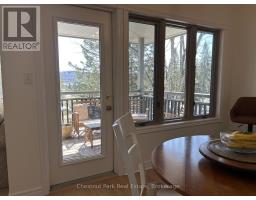 $659.49 MonthlyGrandview's Forest Hill in Muskoka, minutes from Huntsville offers an updated main floor condo with peaceful views and stair-free, low-maintenance living. This residence is ideal for those looking to downsize, investors, or anyone seeking a tranquil getaway. The condo features a bright 1-bedroom, 1-bathroom layout highlighted by hardwood floors and fresh paint throughout. The stylish kitchen is equipped with granite countertops and ample workspace, perfect for preparing meals. Large windows flood the space with natural light and offer treed views in every room. Relax in the inviting living room, complete with a cozy wood-burning fireplace that is WETT certified. The spacious bedroom provides a comfortable sanctuary, while the updated bathroom includes a walk-in shower. Additional highlights include in-suite laundry, a storage closet, a new natural gas furnace, and updated electrical systems. Located just five minutes from downtown Huntsville, the condo offers convenient access to Algonquin and Arrowhead Provincial Park, Hidden Valley Ski Club, several golf courses, and scenic trails that lead to Fairy Lake. Experience four-season living in one of Muskoka's most desirable communities. (id:46441)