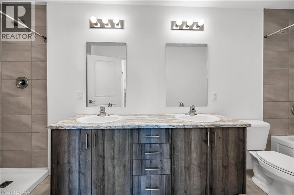 Welcome to this bright spacious 1513 square foot Waterdown Condo. This corner unit has East, North and Western exposure. Primary bedroom with 2 windows allows multiple views. 6 piece ensuite with double sinks, tub and separate oversize shower. Plenty of cabinetry and counter space in kitchen that overlooks the 27 foot dining room/living room. Featuring 3 bedrooms, 2.5 bathrooms, in suite laundry plus an oversize walk-in closet/storage space just off the entryway. Condo fee only $596/month. Walking distance to multiple shops, restaurants and local businesses. Exclusive use storage locker, 1 underground parking space plus 1 outside parking space complete the package. Dont miss out! (id:46441)