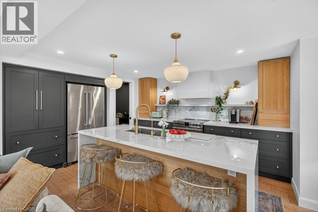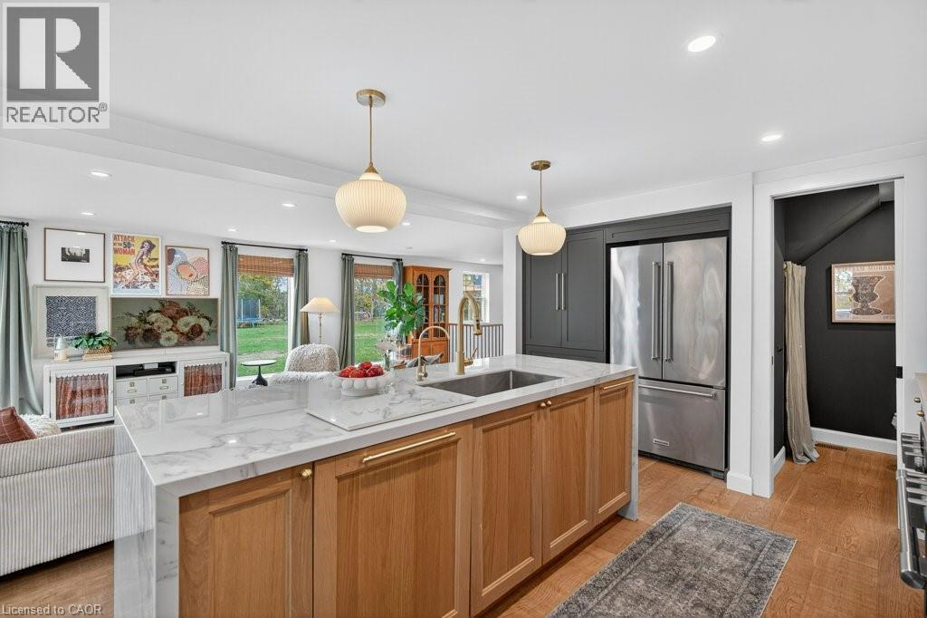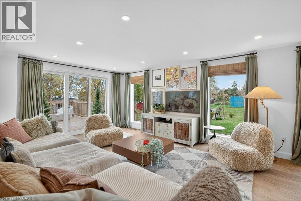 Spectacularly redesigned without an inch of space overlooked, this Lake Erie property in the quiet community of Lowbanks is ready for its next family and loaded with opportunity for all types of buyers! Totaling 1.65 acres of land this abnormal lot includes a private road, a massive property with two outbuildings, and private beach frontage with your own piece of the lake! Fully overhauled in 2022, this one and a half story home now features an open concept main floor plan, flooded with light through new windows, with a custom designed chef’s kitchen, powder room and main floor bedroom. Completed in wide plank engineered hardwood, modern railings, and design focused colours and metal tones this level is move in ready with extra storage AND access to the back deck with views of the lake! Upstairs find two additional bedrooms and a spa bath finished in ceramic tile with a standalone tub, glass shower and double sinks! The finished basement is like no other - over 8 feet tall, fully waterproofed, this space adds bright square footage and accommodates a guest room, 3 piece bath and family rec space all finished in Berber carpet with electric fireplace and custom wainscotting. Still need space? Originally a garage, the detached “second house” is currently used as a gym and studio, fully electrified, insulated and finished in durable, neutral materials perfect for overflow living space, work shop, and more with easy access to plumbing for future projects AND a private deck! We still haven’t mentioned the single bay garage, chicken coop, hot tub OR the actual sand beach! New furnace, AC, wiring, plumbing, garage roof, owned water filter and water heater all 2022. Bus to schools, short drive to shopping, 4 seasons of vistas and a true summer fun hideaway for those looking for recreation! (id:46441)