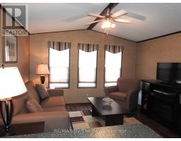 The Perfect Family Summer Getaway in Wasaga CountryLife Resort! This fully furnished 2-bedroom, 3-season cottage is designed with family living in mind, offering additional sleeping space with pull-out sofas in both the living room and sunroom-ideal for children, grandchildren, and guests. Enjoy a bright sunroom and inviting covered porch, perfect for relaxing, entertaining, or unwinding after a day at the beach. Set on a beautifully treed lot with mature spruce and maple, this property offers both privacy and a peaceful outdoor setting. Ideally located directly across from the pool and playground, it's a dream spot for young families-like having resort-style amenities right at your doorstep. Plus, you're less than a 10-minute walk to the sandy beaches of Georgian Bay and close to scenic trails. Newer than many current offerings in the park, this cottage presents excellent value and a wonderful opportunity to create lasting summer memories in a vibrant, community-oriented resort. 2026 seasonal site fees $7008.08 plus HST (id:46441)