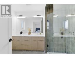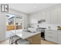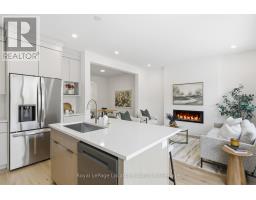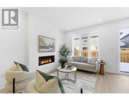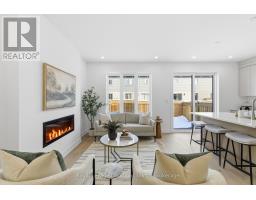 Introducing an exceptional new townhouse by award-winning Sunvale Homes, thoughtfully designed to highlight light, warmth, and natural textures. The main floor offers a flowing, open layout that feels both spacious and inviting. The kitchen is a chef's dream, featuring quartz countertops, stainless steel appliances, and a large island perfect for meal prep or casual gatherings. Just off the kitchen, the living room creates a cozy yet sophisticated space, anchored by an electric fireplace that make it ideal for relaxing or entertaining. The dining area, positioned adjacent to the living room, provides ample space for family meals or dinner parties. Upstairs, a custom staircase in warm white oak leads to a thoughtfully arranged second level. The primary suite is a serene retreat, with a sun-filled bedroom, walk-in closet, and a spa-inspired ensuite boasting a double white oak vanity, quartz countertops, and a glass-enclosed shower with striking green tiles. Two additional bedrooms, a chic 4-piece bath, and convenient upper-level laundry complete this level. With its nature-inspired design, abundant natural light, and elevated finishes, this home presents a fresh, modern take on luxury living. The backyard is fully sodded and fenced, (deck not included) with front landscaping and driveways scheduled for summer completion. This is the Forest Model. Common element fee: $186.62. Price does not include HST. Buyers who qualify under the government rebate program may be eligible for a full HST rebate. Purchasers must verify their eligibility directly with their own legal or financial advisors. (id:46441)