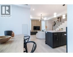Discover your dream home in the heart of the Innovation District! Unit 101 - 5 Wellington Street effortlessly combines modern architecture with unparalleled convenience & lifestyle. As you step inside, you’ll be greeted by a beautifully crafted interior that boasts uncompromised attention to detail and top-quality materials. This spacious and well-lit corner unit features high ceilings and brushed oak hardwood floors, creating a light and inviting atmosphere. The custom kitchen is fully equipped with top-of-the-line built-in Fisher & Paykel appliances, stunning quartz countertops, and an adjoining dining area with impressive double height ceiling and windows that provide maximum natural light. On the second level, you’ll find two generously sized bedrooms. The primary suite is a true private oasis, featuring 12' ceilings, a balcony and a luxurious 4-piece ensuite with a double vanity & walk-in shower, as well as a grand custom walk-in closet. The additional upper floor bedroom features a luxurious half wall look over that makes this a perfect high end office, or guest bedroom with lots of storage. Full additional 4 piece bathroom provides maximum privacy. The lower level provides even more living space, offering a versatile living room, a guest bedroom, powder room, and stacked washer dryer. This flexible area is perfect for accommodating guests, enjoying recreation, and entertaining. The unit also features both an interior foyer connected to the interior community of Station Park, as well as an exterior door with private patio perfect for barbecue & entertaining. The unparalleled resident amenities featured at Station Park (swim spas, hot tubs, high end gym, peloton room, bowling lanes, party rooms, olympic running track, ice rink, and much more) provide a lifestyle that is unavailable anywhere else in Kitchener (id:46441)