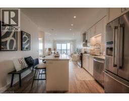 Experience upscale living in the heart of the Gaslight District with this stunning 2-bedroom, 2-bath condo available for lease. Located on the quiet side of the building, this unit offers sweeping views of the Grand River and downtown Galt from every window. Step out to the balcony, accessible from both the living room and the primary suite, and enjoy a private retreat with a view. Inside, the open layout is modern and inviting. The kitchen is a showpiece with quartz countertops, matching backsplash, upgraded appliances and stylish fixtures. Hardwood flooring and upgraded tile run throughout, creating a clean and sophisticated feel. The primary bedroom features its own ensuite, while the second bedroom and bathroom provide flexibility for guests, a home office or shared living. This condo also comes with a storage locker and access to some of the city’s best amenities. Within the building, you’ll find a secure lobby, fully equipped fitness centre and yoga studio, games room with billiards and ping-pong, a catering kitchen, spacious private dining area, and a party room with bar and library. Outdoor terraces overlooking Gaslight Square and downtown are designed for gathering, complete with pergolas, fire pits and barbecues. Step outside your door and discover the vibrant lifestyle of the Gaslight District, with restaurants, cafés, shops and entertainment just steps away. Offering comfort, convenience, and an unbeatable location, this condo is the perfect place to call home. (id:46441)