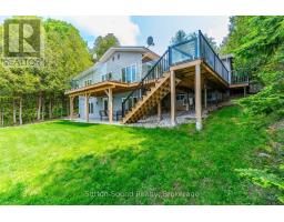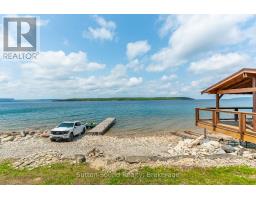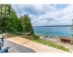 Located by Big Bay on the crystal-clear shores of Georgian Bay, this stunning waterfront property offers over 75 feet of shoreline with breathtaking views of White Cloud Island and Griffith Island. Whether you're looking for a seasonal escape or a year-round home, this property delivers an unforgettable Georgian Bay lifestyle. This charming bungalow offers three bedrooms, two kitchens & two full bathrooms which is perfectly suited for extended family stays or rental potential. The main level includes two bedrooms, a spacious kitchen and dining area with a sunken living room offering a cozy woodstove and panoramic water views. Step through the patio doors to an oversized new deck with sleek glass railings, designed to maximize the view. Downstairs, the walk-out lower level functions as a potential self-contained one-bedroom suite, featuring a fully updated bathroom, a large eat in kitchen plus a large family room with gas fireplace & patio doors that walkout to a concrete patio. Additional features include: New forced air heat pump with central A/C. Steel roof for durability and low maintenance. Separate 16 x 20 outbuilding ideal for a bunkie, games room or studio. Close to Wiarton and Owen Sound for convenience. Whether you're launching a kayak at sunrise, enjoying a family BBQ on the deck or simply soaking up the serenity, this property offers the perfect backdrop for creating lasting family memories. Thoughtfully designed for relaxation and recreation, the property features a waterside shed with a private covered patio ideal for enjoying the incredible views. Enjoy the private dock and make use of the custom storage designed for your personal watercraft. Call your realtor today to book your private showing! (id:46441)