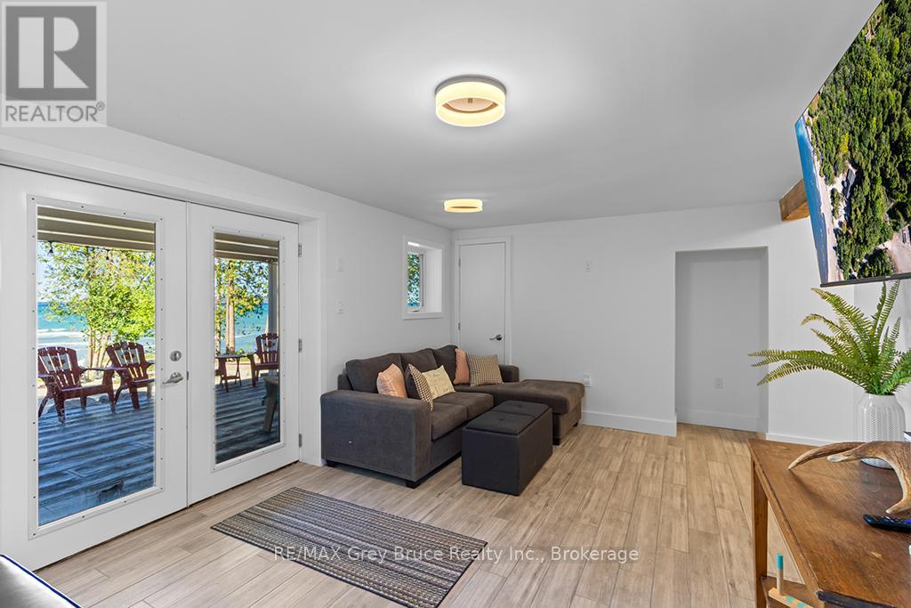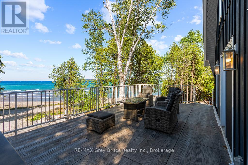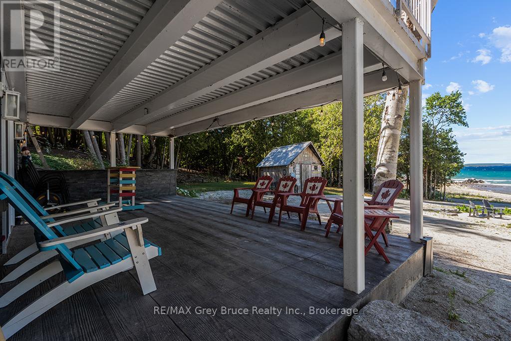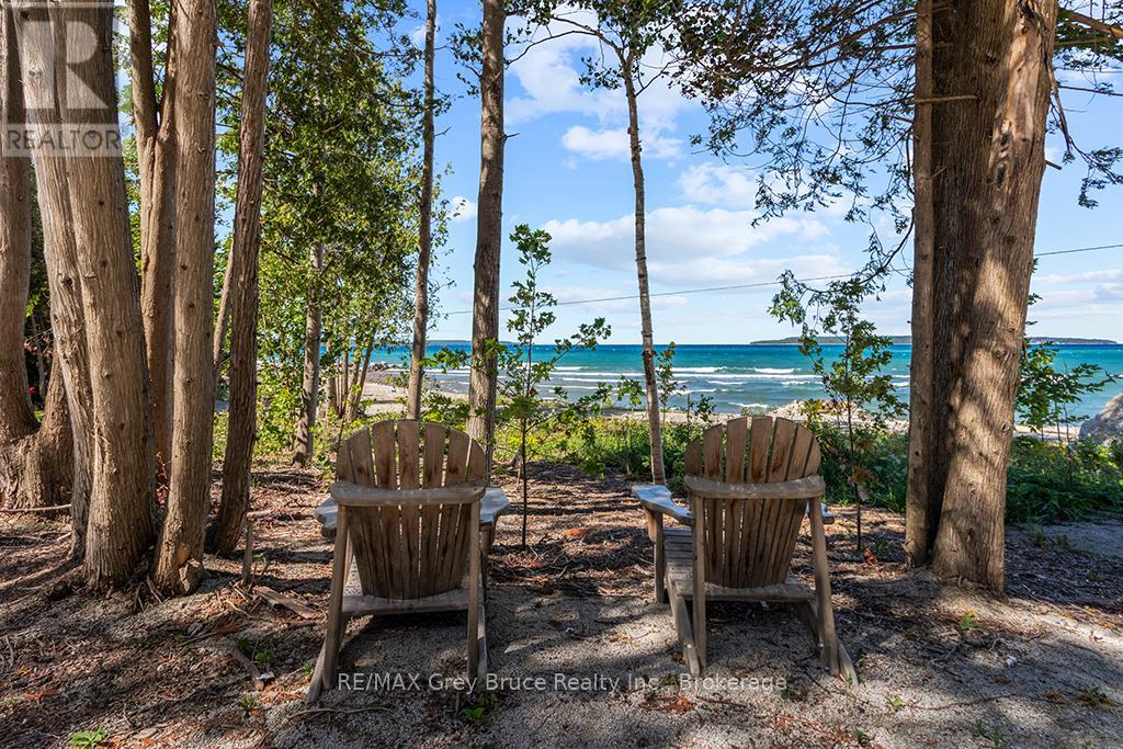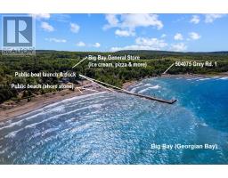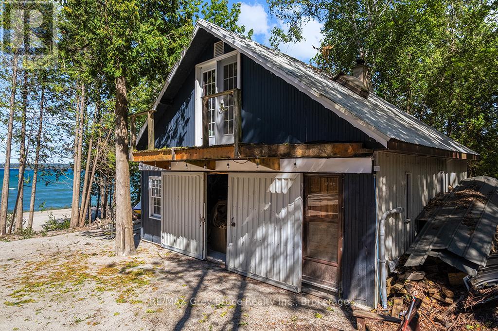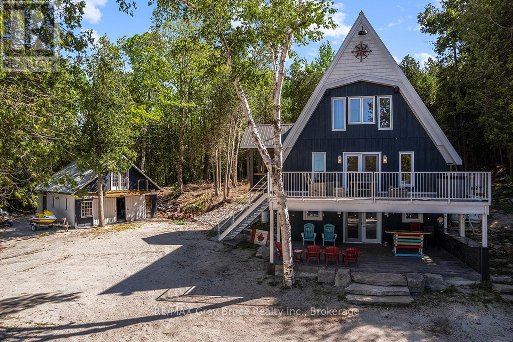 Very Private Georgian Bay Waterfront Home on 2 acres. This is the waterfront home everyone is looking for and very few can find. It has tons of living space with over 2000 sq.ft. finished inside and over 1500 sq.ft. of deck & patio out. Lots of water with approximately 240 feet of shoreline on Big Bay (Georgian Bay). Spectacular views of Georgian Bay, the Islands (Griffith, Hay and White Cloud) and the Escarpment. Crystal clear walk-in water off a shore stone beach. Circular drive and lots of parking for cars, trailers, boats, etc. The immaculate kitchen opens out onto a huge (26' x 24') covered patio for comfortable entertaining despite the weather. At the waterside of the house there is a huge (14' x 26') open air sun deck looking out on Georgian Bay off the living room and dining room, as well as a 17' x 26' covered patio/bar area off the family room on the lower level. 3 bathrooms and accommodation for lots of friends and family. New septic system and new steel roof in 2024. Beautifully landscaped stone patio with fire pit between home and water. Also a more secluded fire pit at the rear of the home with views of mature mixed hardwood trees. The 24' x 24' garage has a loft with even more potential. The woods is open and nice place to walk. Driveway off Grey Rd 1 is passable but needs trimming and grading-please use Dewar St. access which is a dead-end road, located off Grey Rd. 1, mid way between the City of Owen Sound and the town of Wiarton in the hamlet of Big Bay. Its a nice comfortable drive on paved roads about 2hrs-13mins from Guelph, Waterloo is 2h-16m, Kitchener is 2h-17m, Orangeville is 1h-51m, Brampton 2h-22m and London is less than 3 hrs. Several golf courses within 30-40 mins, jet capable airport is 16 mins away and a public boat launch and dock is about a kilometer away. Truly a property you must see to appreciate how amazing a find it is. Please drive very slowly along Dewar St. Call today to book your personal viewing. (id:46441)