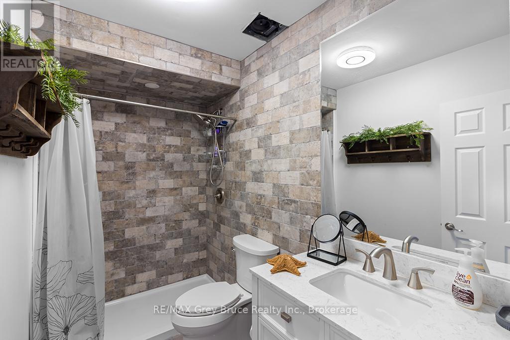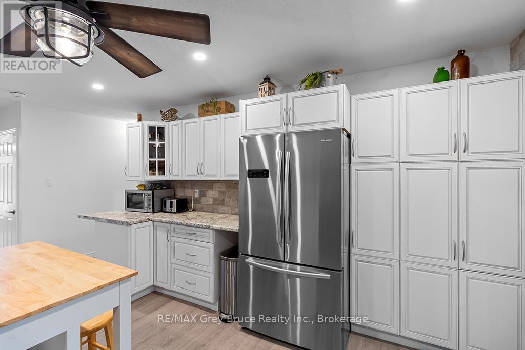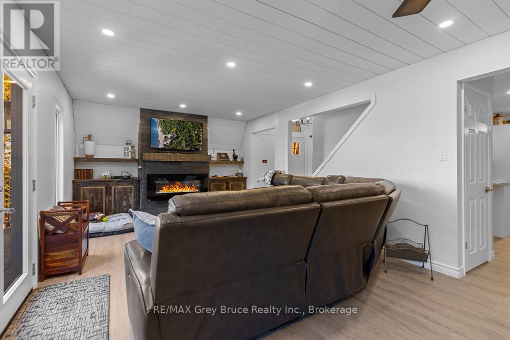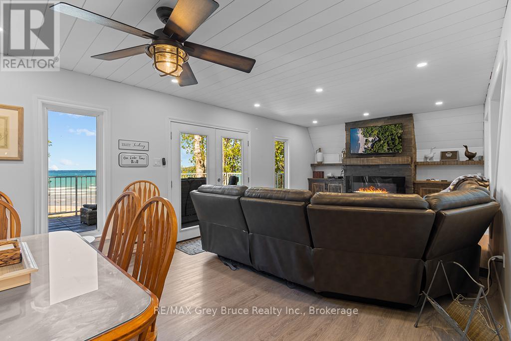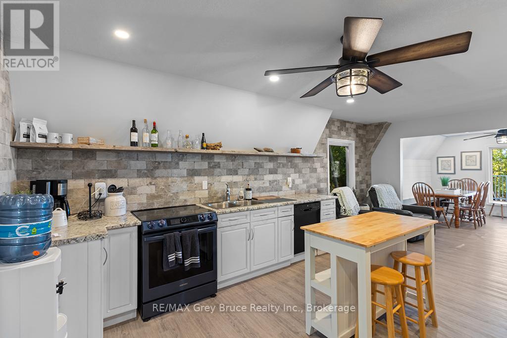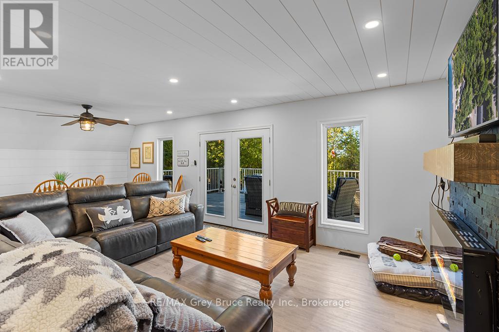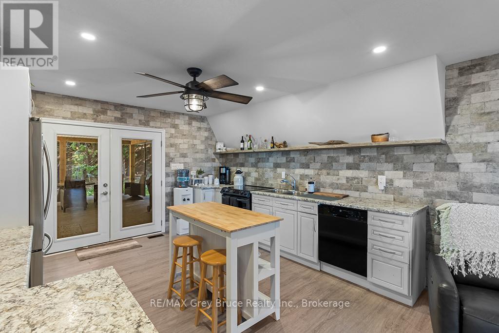 Very Private Georgian Bay Waterfront Home on 2 acres. This is the waterfront home everyone is looking for and very few can find. It has tons of living space with over 2000 sq.ft. finished inside and over 1500 sq.ft. of deck & patio out. Lots of water with approximately 240 feet of shoreline on Big Bay (Georgian Bay). Spectacular views of Georgian Bay, the Islands (Griffith, Hay and White Cloud) and the Escarpment. Crystal clear walk-in water off a shore stone beach. Circular drive and lots of parking for cars, trailers, boats, etc. The immaculate kitchen opens out onto a huge (26' x 24') covered patio for comfortable entertaining despite the weather. At the waterside of the house there is a huge (14' x 26') open air sun deck looking out on Georgian Bay off the living room and dining room, as well as a 17' x 26' covered patio/bar area off the family room on the lower level. 3 bathrooms and accommodation for lots of friends and family. New septic system and new steel roof in 2024. Beautifully landscaped stone patio with fire pit between home and water. Also a more secluded fire pit at the rear of the home with views of mature mixed hardwood trees. The 24' x 24' garage has a loft with even more potential. The woods is open and nice place to walk. Driveway off Grey Rd 1 is passable but needs trimming and grading-please use Dewar St. access which is a dead-end road, located off Grey Rd. 1, mid way between the City of Owen Sound and the town of Wiarton in the hamlet of Big Bay. Its a nice comfortable drive on paved roads about 2hrs-13mins from Guelph, Waterloo is 2h-16m, Kitchener is 2h-17m, Orangeville is 1h-51m, Brampton 2h-22m and London is less than 3 hrs. Several golf courses within 30-40 mins, jet capable airport is 16 mins away and a public boat launch and dock is about a kilometer away. Truly a property you must see to appreciate how amazing a find it is. Please drive very slowly along Dewar St. Call today to book your personal viewing. (id:46441)