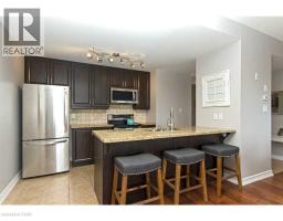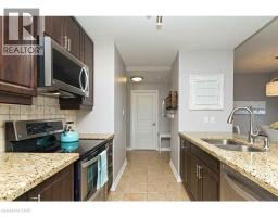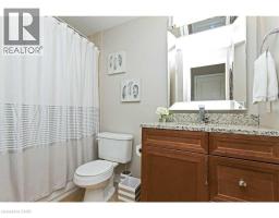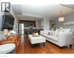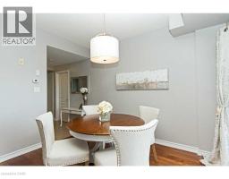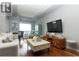 Welcome to this stunning, upscale 1-bedroom, 2-bathroom suite offering over 950 sq. ft. of beautifully designed living space. This bright, open-concept layout features 9-foot ceilings and expansive windows that flood the home with natural light. The gourmet kitchen is perfect for entertaining, complete with stainless steel appliances, granite countertops, and an impressive 7-foot island with breakfast bar seating. The spacious living room showcases a large picture window, creating an inviting and airy atmosphere. Retreat to the generous primary bedroom featuring a walk-in closet and a 4-piece ensuite with granite counters. A separate updated 2-piece powder room, in-suite laundry, and a spacious private patio add to the comfort and convenience of this exceptional unit. Ideally located within walking distance to Appleby GO, just seconds to the QEW, and surrounded by endless amenities. (id:46441)