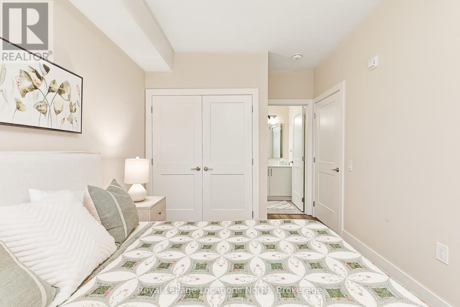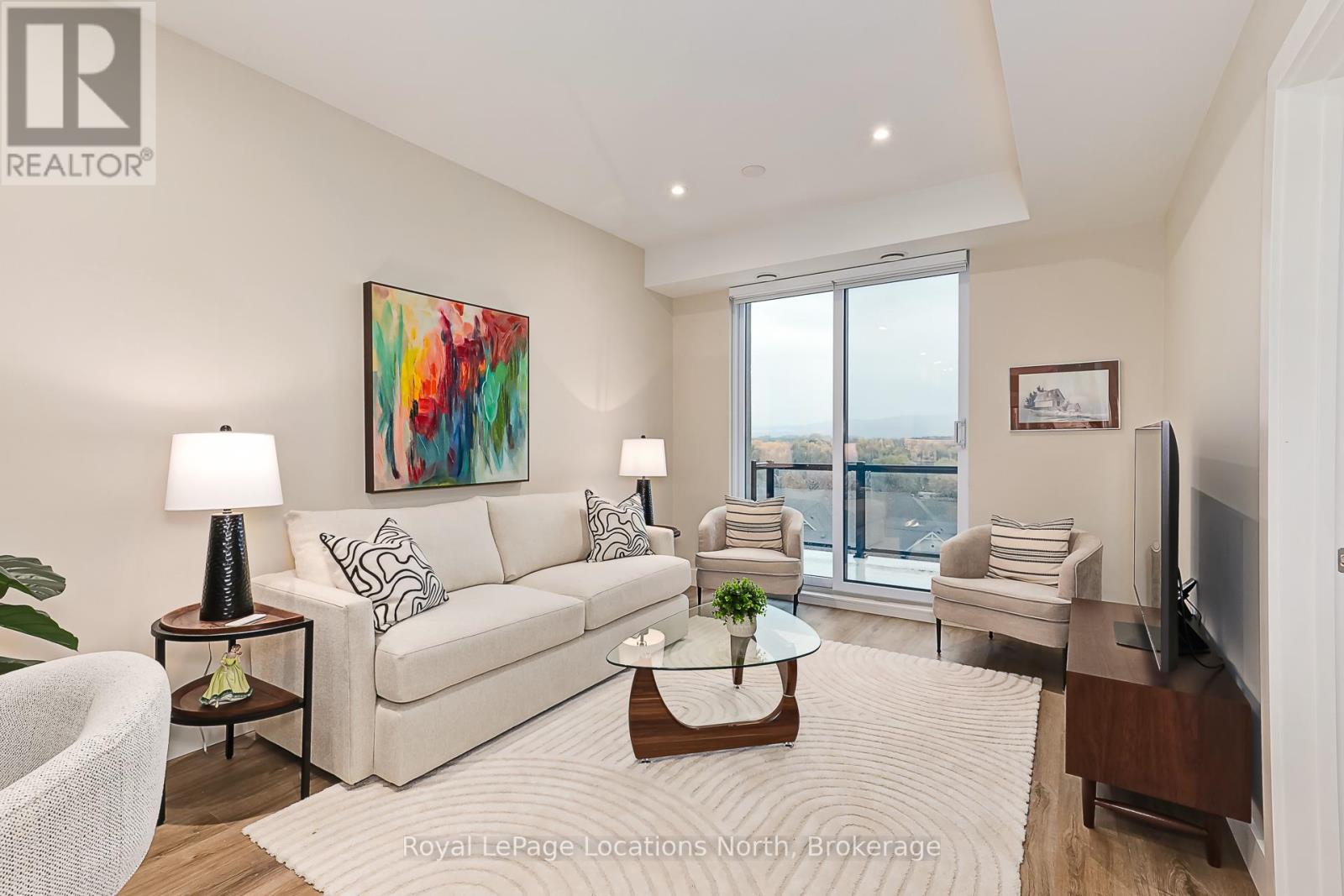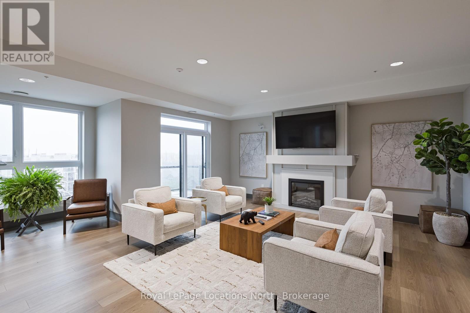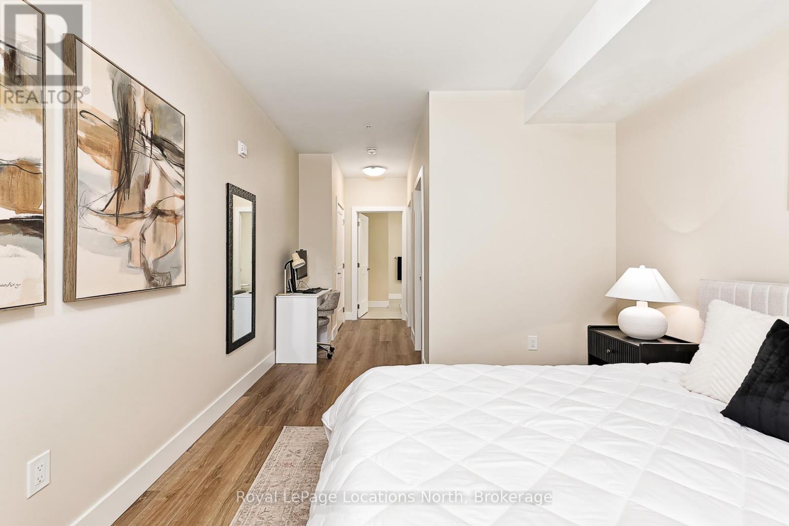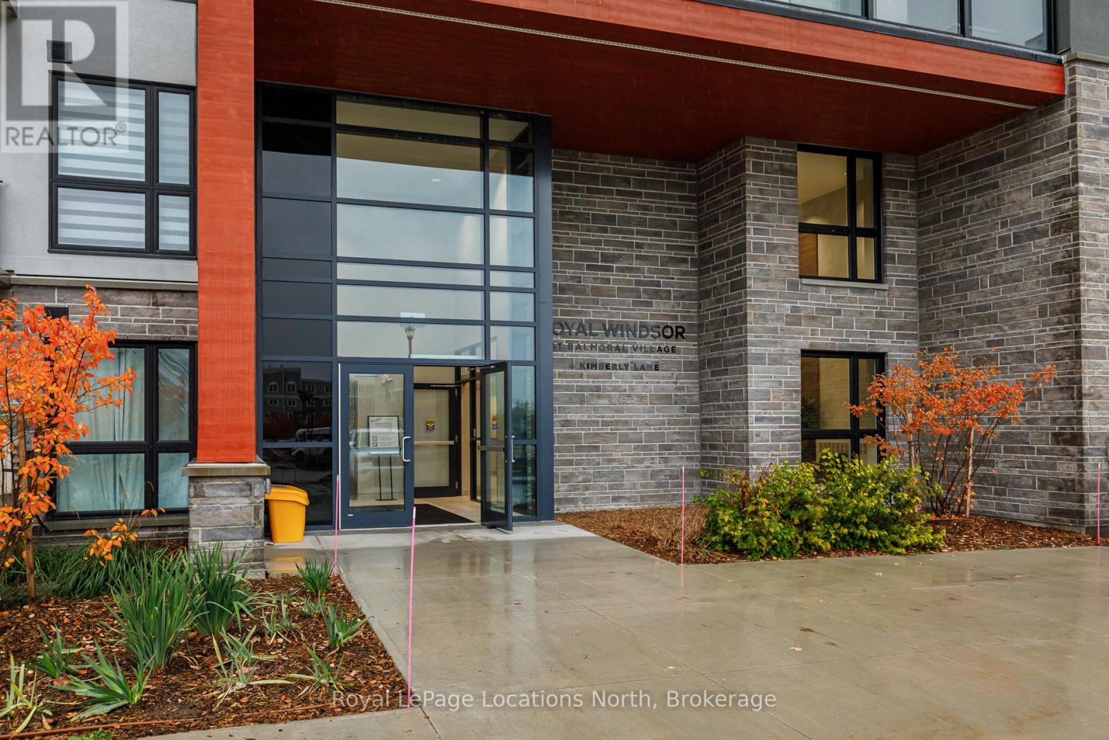 Welcome to Royal Windsor, one of Collingwood's most sought-after condo communities - where modern luxury meets active, carefree living. This spacious 2-bedroom + den suite offers breathtaking west-facing views of Blue Mountain and a thoughtfully designed, open-concept layout perfect for both relaxing and entertaining. The bright, contemporary kitchen features stainless steel appliances, quartz countertops, soft-close cabinetry and elegant pot lighting. The inviting living room opens to a large private patio - ideal for taking in sunset mountain views. The primary suite is a true retreat, featuring two walk-in closets and a 5-piece wheelchair-accessible ensuite, offering both comfort and sophistication. Remote blinds, luxury vinyl plank flooring and a neutral palette add to the refined atmosphere. An assigned underground parking space is included with this state-of-the-art condo, designed with convenience and lifestyle in mind. At Royal Windsor, residents enjoy a community built on wellness and connection. Amenities include a rooftop terrace with panoramic views of Blue Mountain, a party room and access to Balmoral Village's clubhouse, complete with a pool, fitness studio, games room and more. Experience maintenance-free living in an exceptional location close to downtown Collingwood, golf, trails, Georgian Bay and Blue Mountain. This is more than a condo - it's a lifestyle. (id:46441)