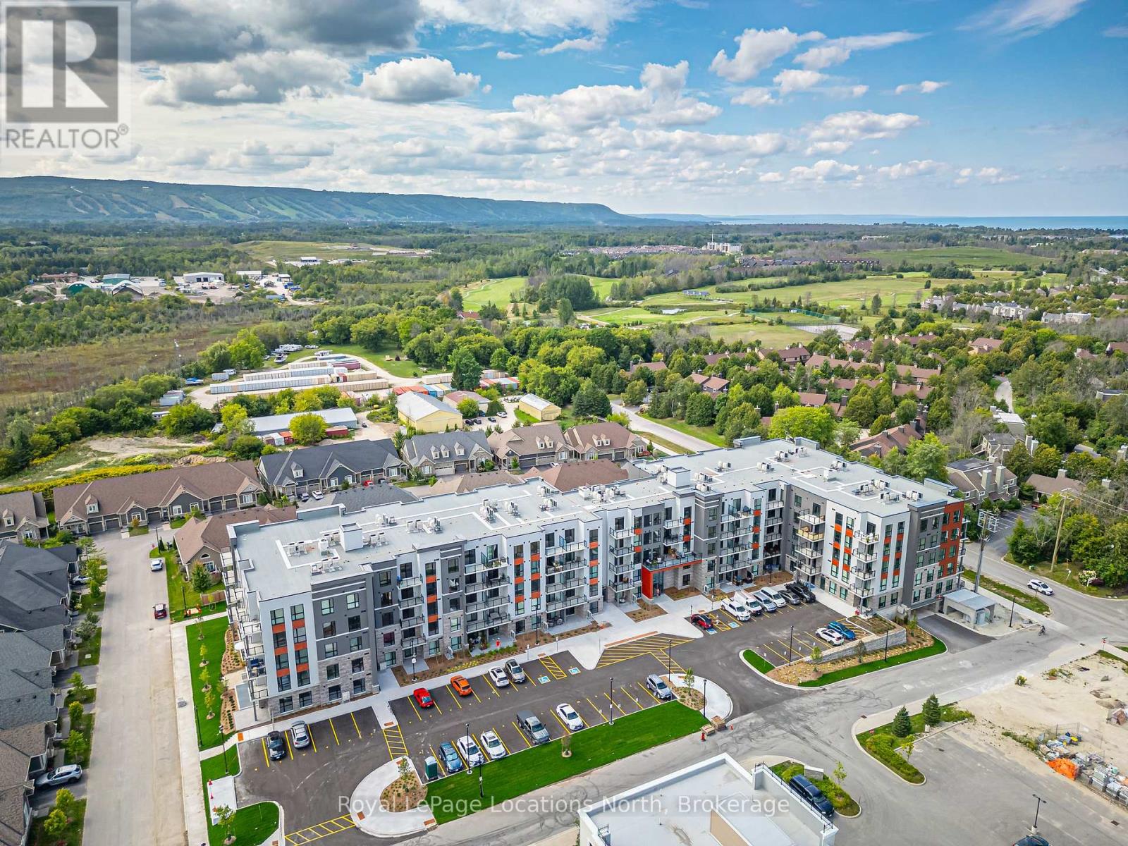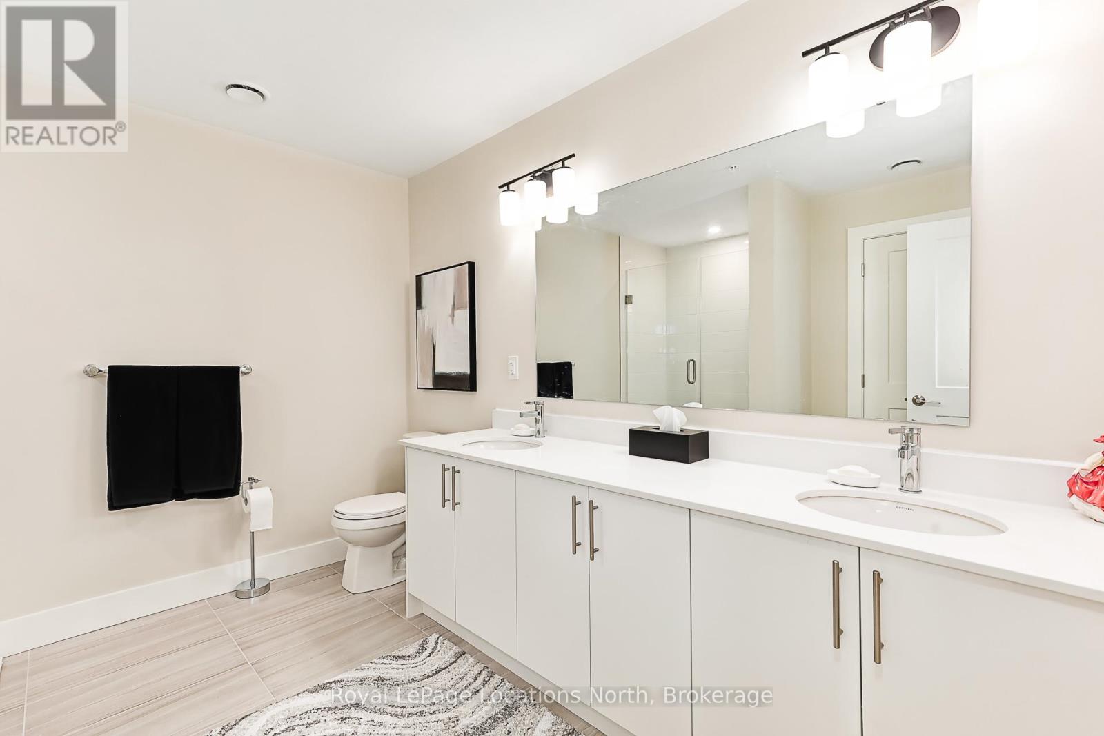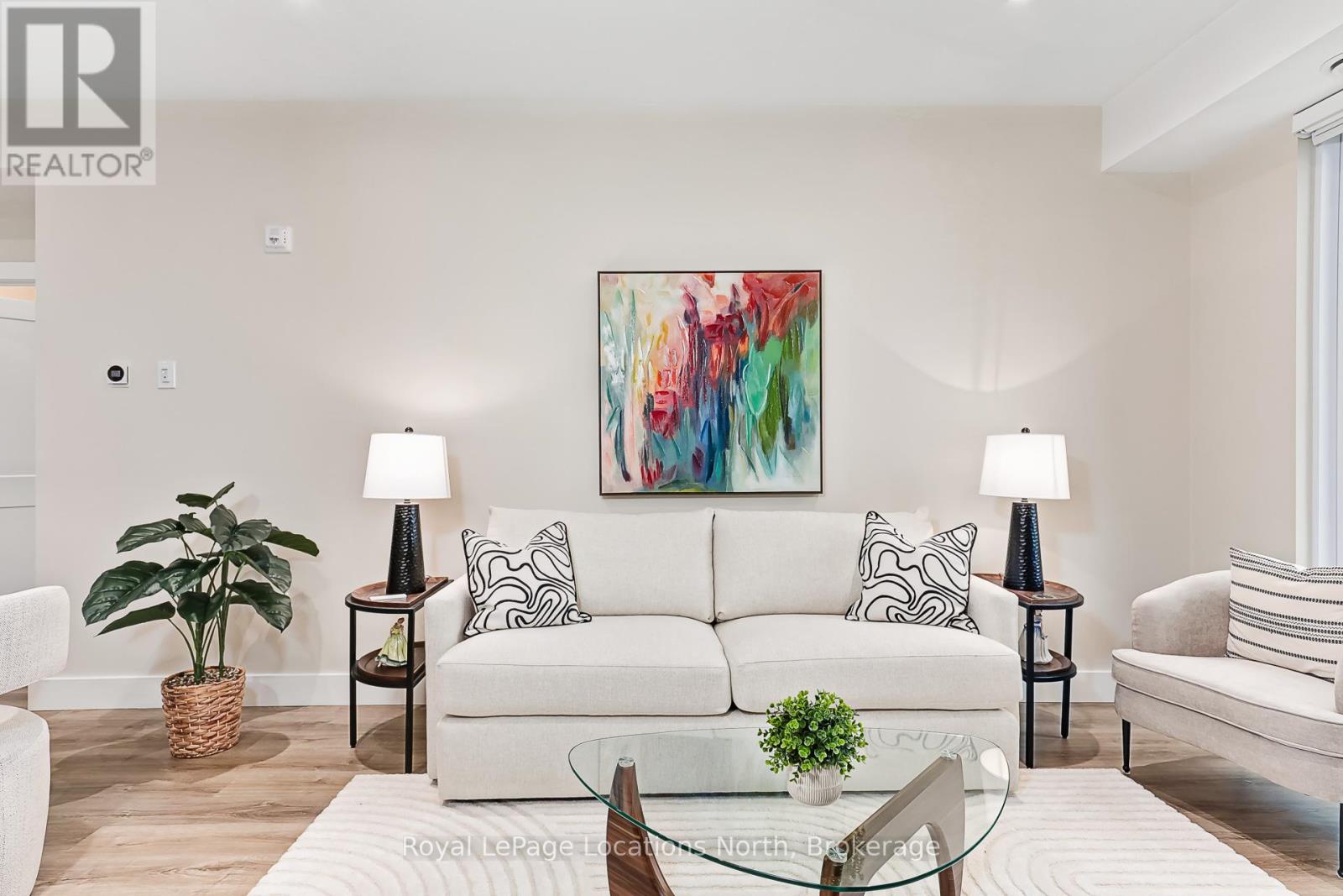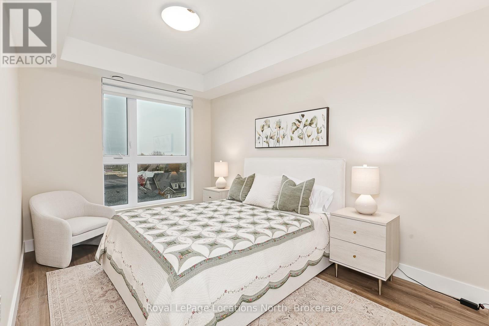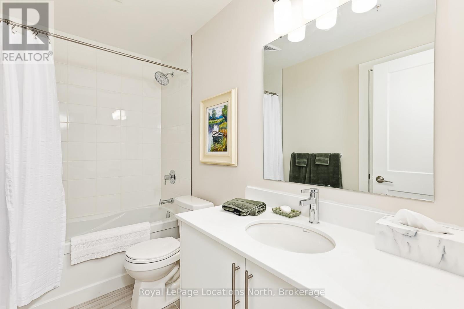 Welcome to Royal Windsor, one of Collingwood's most sought-after condo communities - where modern luxury meets active, carefree living. This spacious 2-bedroom + den suite offers breathtaking west-facing views of Blue Mountain and a thoughtfully designed, open-concept layout perfect for both relaxing and entertaining. The bright, contemporary kitchen features stainless steel appliances, quartz countertops, soft-close cabinetry and elegant pot lighting. The inviting living room opens to a large private patio - ideal for taking in sunset mountain views. The primary suite is a true retreat, featuring two walk-in closets and a 5-piece wheelchair-accessible ensuite, offering both comfort and sophistication. Remote blinds, luxury vinyl plank flooring and a neutral palette add to the refined atmosphere. An assigned underground parking space is included with this state-of-the-art condo, designed with convenience and lifestyle in mind. At Royal Windsor, residents enjoy a community built on wellness and connection. Amenities include a rooftop terrace with panoramic views of Blue Mountain, a party room and access to Balmoral Village's clubhouse, complete with a pool, fitness studio, games room and more. Experience maintenance-free living in an exceptional location close to downtown Collingwood, golf, trails, Georgian Bay and Blue Mountain. This is more than a condo - it's a lifestyle. (id:46441)