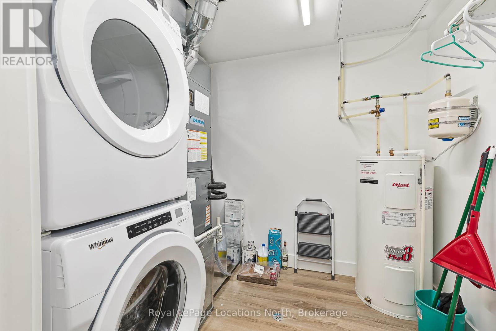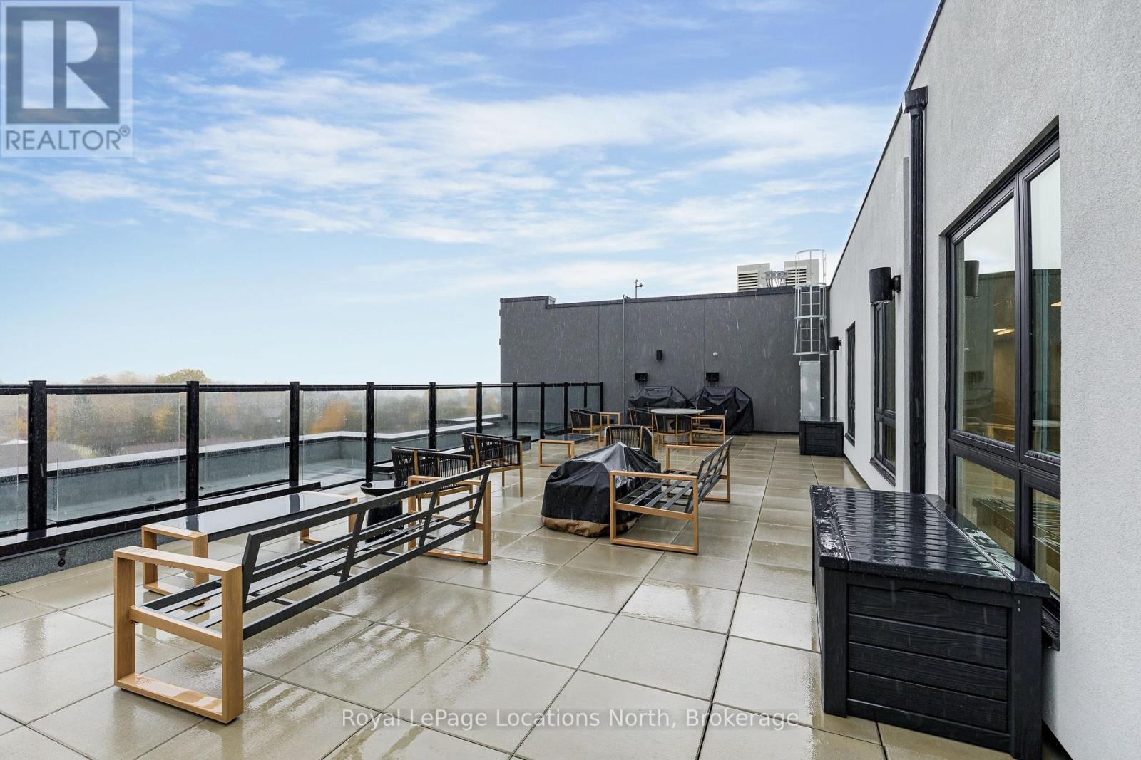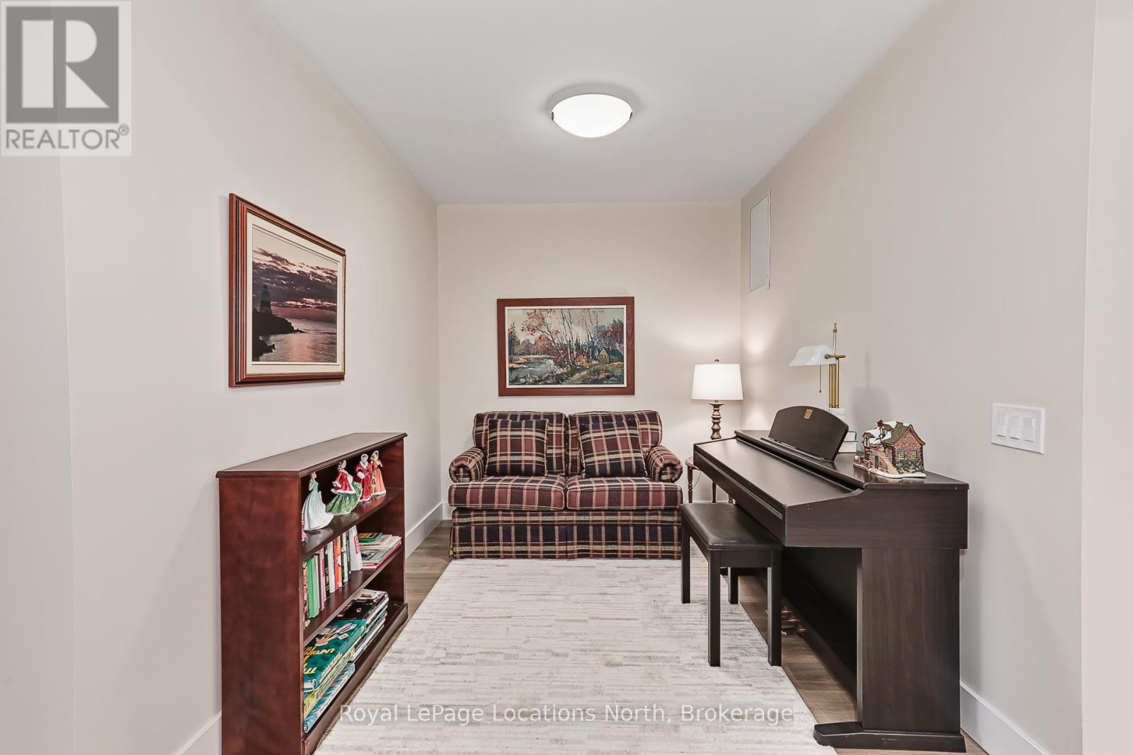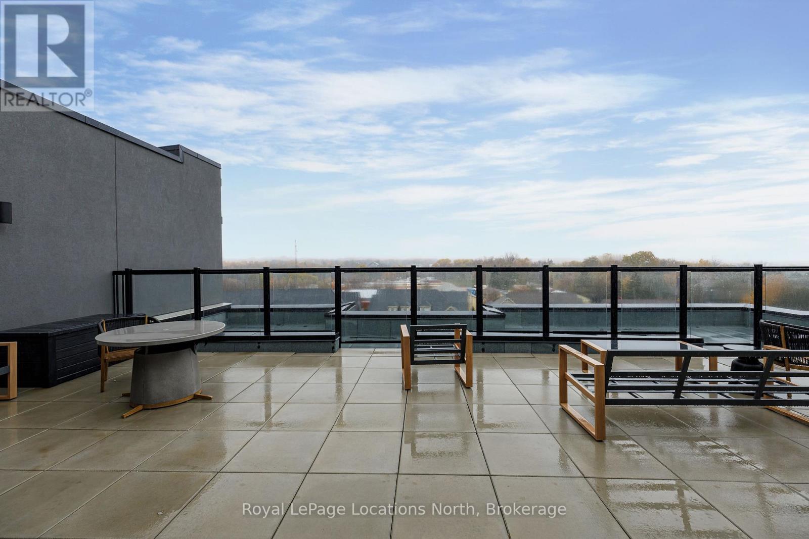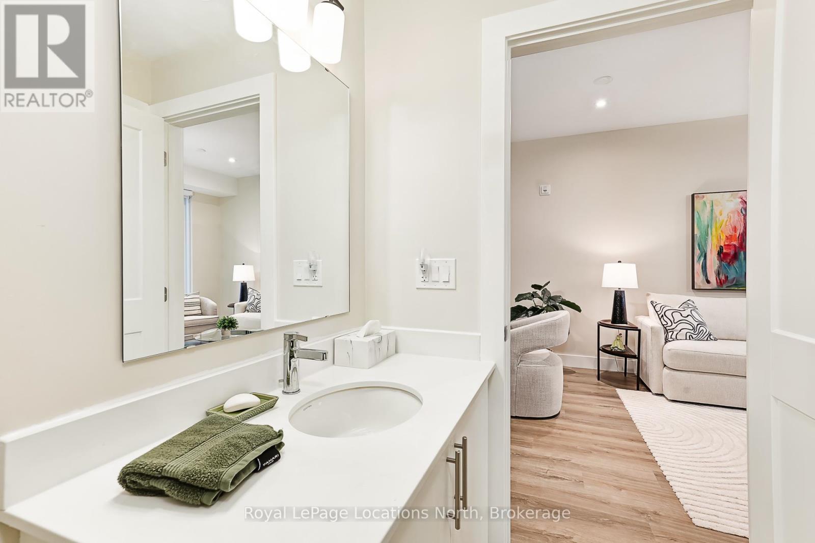 Welcome to Royal Windsor, one of Collingwood's most sought-after condo communities - where modern luxury meets active, carefree living. This spacious 2-bedroom + den suite offers breathtaking west-facing views of Blue Mountain and a thoughtfully designed, open-concept layout perfect for both relaxing and entertaining. The bright, contemporary kitchen features stainless steel appliances, quartz countertops, soft-close cabinetry and elegant pot lighting. The inviting living room opens to a large private patio - ideal for taking in sunset mountain views. The primary suite is a true retreat, featuring two walk-in closets and a 5-piece wheelchair-accessible ensuite, offering both comfort and sophistication. Remote blinds, luxury vinyl plank flooring and a neutral palette add to the refined atmosphere. An assigned underground parking space is included with this state-of-the-art condo, designed with convenience and lifestyle in mind. At Royal Windsor, residents enjoy a community built on wellness and connection. Amenities include a rooftop terrace with panoramic views of Blue Mountain, a party room and access to Balmoral Village's clubhouse, complete with a pool, fitness studio, games room and more. Experience maintenance-free living in an exceptional location close to downtown Collingwood, golf, trails, Georgian Bay and Blue Mountain. This is more than a condo - it's a lifestyle. (id:46441)