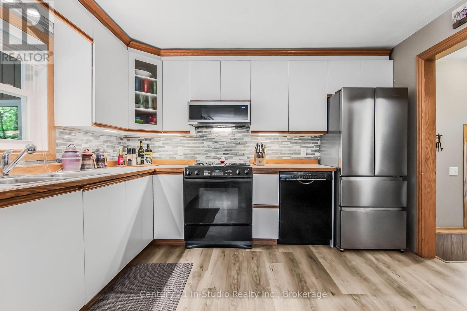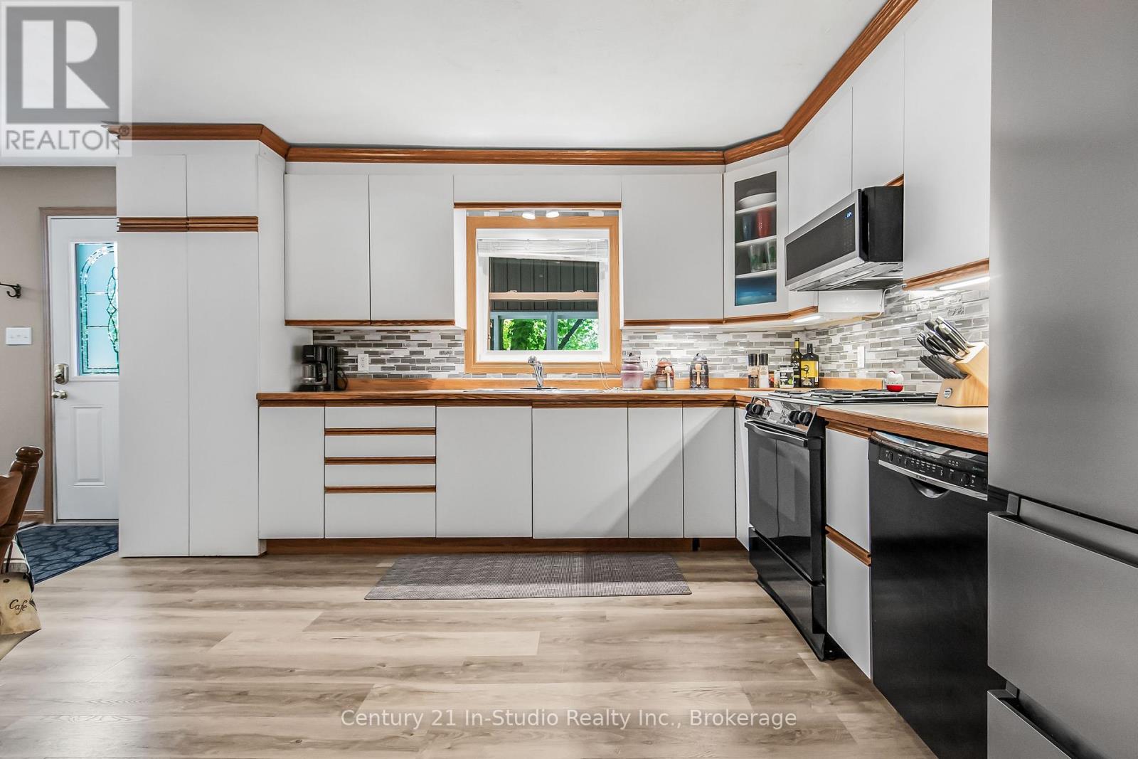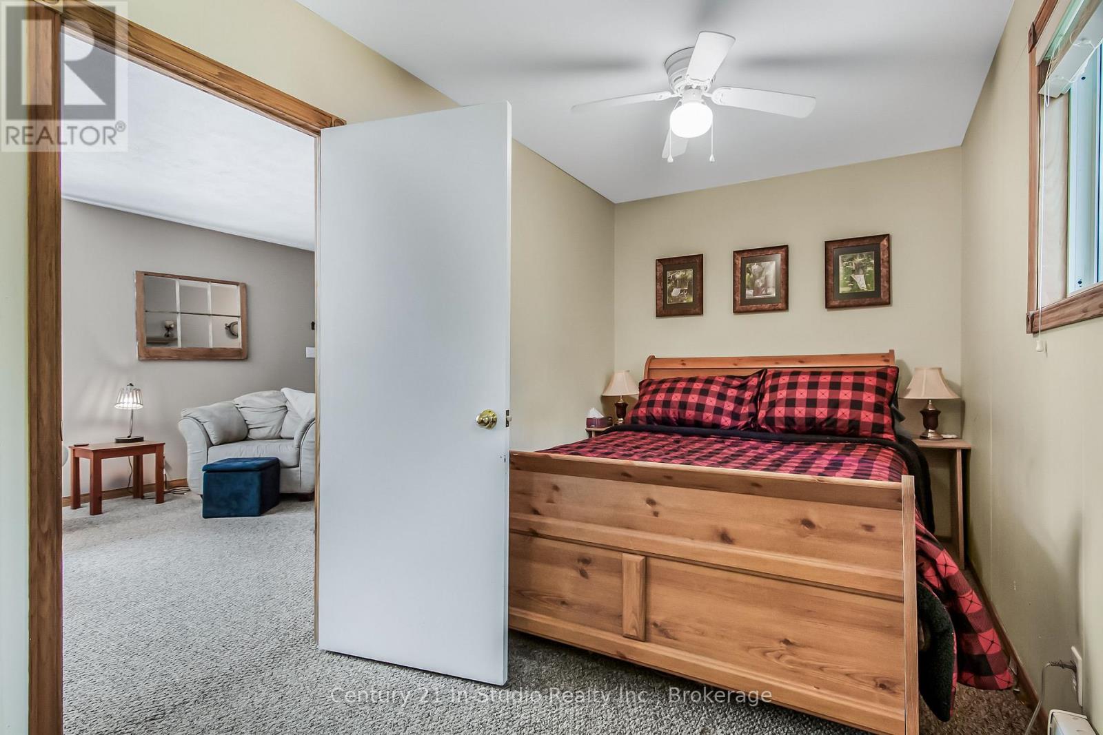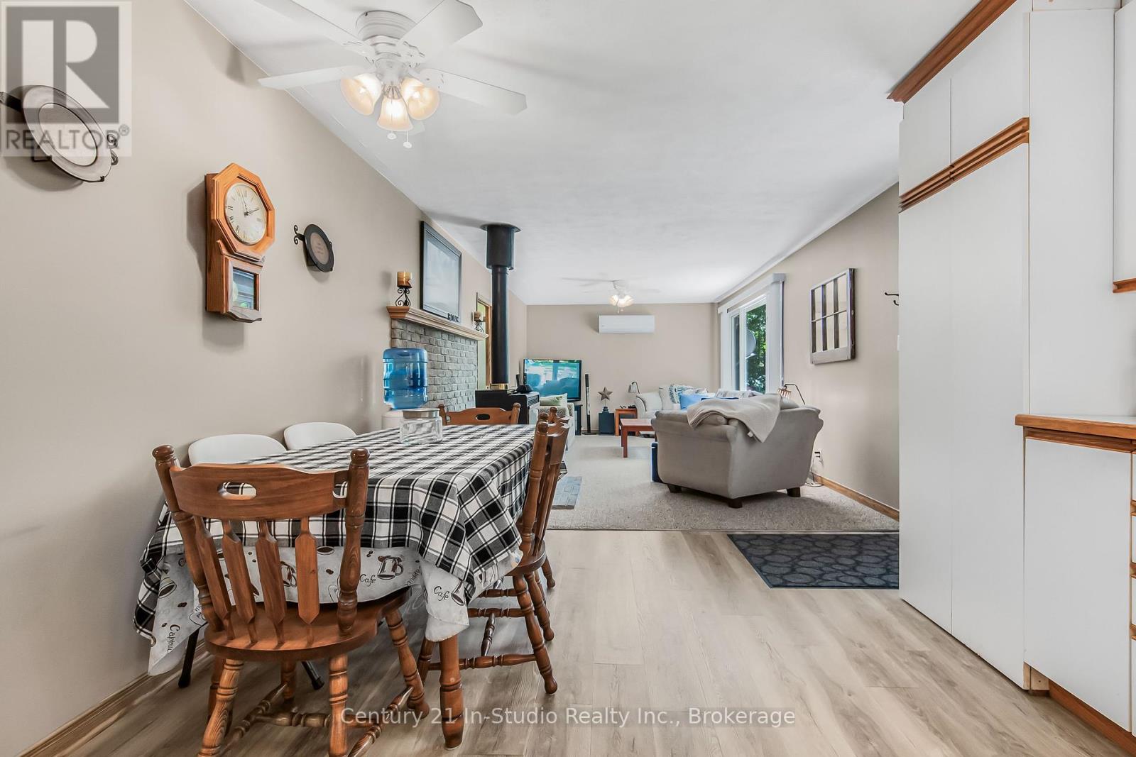 Your Lakeside Retreat Awaits! Discover the perfect canvas for endless family memories at this enchanting cottage in Oliphant, a tranquil lakeside community just 10 minutes north of vibrant Sauble Beach. Tucked away on a quiet side street, this property masterfully blends value, amenities, and cherished privacy. The main cottage offers a cozy haven with its comfortable bedroom and a versatile, full-height basement featuring storage, laundry area, a handy walkout and a warming wood-burning stove. The main level invites connection with its spacious eat-in kitchen and a living room centered around a welcoming propane fireplace. Step out onto the party-sized screened porch, or retreat to the lovely three-season room, ideal for savoring those cool, serene evenings. Beyond the cottage, a world of relaxation and recreation unfolds. You'll be delighted by the covered hot tub, an inviting oasis, and a fully finished, insulated 32'x15' accessory building, a fantastic space for extra guests to unwind. The expansive grounds also boast a large storage building with a convenient roll-up garage door, ensuring ample space for all your toys. For ultimate peace of mind, a Generac backup generator, newer metal roof and a ductless AC/heat unit provide year-round comfort. And for a touch of active fun, embrace the sun on your very own beach volleyball court. This is more than just a cottage; it's a lifestyle, offering a unique blend of features at an attractive price point. This exceptional property truly needs to be experienced in person. All furnishings included in purchase price, making this a turn key summer cottage! (id:46441)