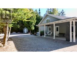 Here's an opportunity to enjoy country living in beautiful Lakewood Community. This custom built bungalow home - situated on over an acre and a half size lot (190 feet wide by 357 feet deep), offering plenty of privacy amongst the evergreens. As you enter into the home, you'll find an open concept living/dining/kitchen with an island counter in the kitchen. The kitchen cabinets are custom built. There is a nice propane fireplace in the living area and a walkout to a wrap around veranda - great area for the barbeque or to enjoy the serenity of nature all around. There are three bedrooms, a four piece bathroom; the primary bedroom has a three piece en suite. Hardwood flooring throughout the home and with ceramic tiles in both bathrooms. In-floor heating. Home has been meticulously cared for and shows very well. Property is nicely landscaped and with flagstone and paver stone pathways and walkways around the perimeter of the home. Shed for extra storage. Lakewood Community offers various hiking trails all around and a boardwalk to the 70 plus acre inland lake. A short drive to Black Creek Provincial Park where you can access the public sandy beach to enjoy swimming, and to watch some amazing sunsets. Amenities are also just a short distance away to Lion's Head for grocery shopping, library, marina, Lion's Head beach, hospital, clinic, and more. Property is located on a year round paved road. Rural services such as garbage pickup and snow removal are available. Taxes: $3027.00. Property makes for a great year round home or a four season getaway from the hustle and bustle. (id:46441)