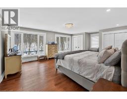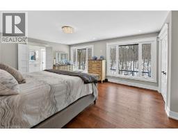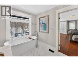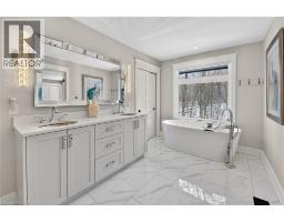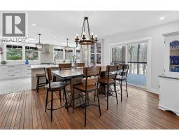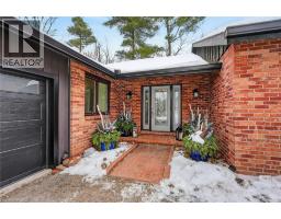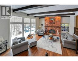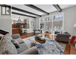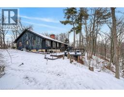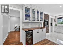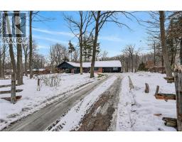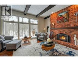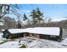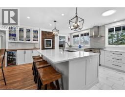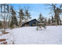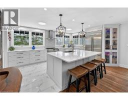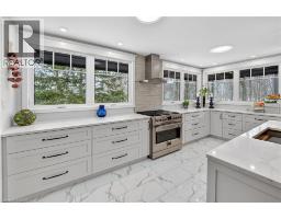 Luxury Bungalow Set on over 2 acres of private property backing directly onto the breathtaking woodland views, a majestic stream and vibrant wildlife that animates the wilderness. Step inside this fully renovated ranch style bungalow which offers refined living surrounded by nature. A large front foyer welcomes you home with stunning views of the Niagara Escarpment. The expansive chef-inspired kitchen boasts of heated floors, a large island, granite countertops, a Fulgor Milano 6-burner gas stove and oven, a walk-in pantry with built-in second oven. Entertain effortlessly by the gas fireplace or at the elegant wet bar accented with a black walnut counter and bar fridge. Step out to the upper deck to barbecue with your herb garden at your side or simply take in the views. The sunken living room features floor-to-ceiling windows overlooking the Escarpment and a second gas fireplace, creating a warm and inviting ambiance. The main-floor primary suite includes a luxurious 5-piece ensuite with heated floors and a walk-in closet, while two additional main-floor bedrooms each enjoy private 3-piece ensuites. Convenient main-floor laundry and garage access complete the level. The fully finished lower level offers an office, exercise room, second kitchen and laundry area, bar and games room, fourth bedroom, and 3-piece bath, with a separate entrance — perfect for guests or multi-generational living. Mostly all newer windows, doors, updated kitchen, 5 bathrooms, flooring throughout, eaves, decks, garage doors, and openers provide peace of mind. An exceptional opportunity combine luxury, natural beauty and in town convince. (id:46441)