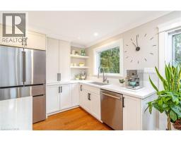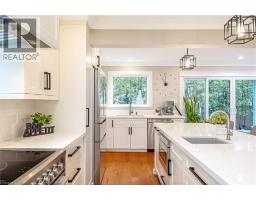 TRUE PRIDE OF OWNERSHIP and steps to parks, schools and WALKING TRAILS! $250,000+ spent in recent well-designed RENOS. This executive 4-Bed 4-Bath home has loads of space for your family. It offers fabulous curb appeal w/ beautiful perennial gardens, poured concrete driveway, back patio, walkways. The main floor features a spacious foyer, laundry room w/ yard access, powder room, 2-CAR HEATED GARAGE (the MAN CAVE/STUDIO), open-concept living room w/ hardwood floors. The GOURMET WHITE EAT-IN KITCHEN and dining rm are thoughtfully designed w/ a MASSIVE 12’ ISLAND, ample cabinetry, quartz countertops and matching backsplash, under-cabinet lighting, potlights, crown moulding, pantry, high-end SS appliances, including a microwave drawer. A double-wide patio door offers views of the lush landscaped yard ... a private secret garden. The family room features a gas fireplace, hardwood floors and BI cabinetry and speakers. The upper level has 4 spacious bedrms w/ stylish barn-door closet doors, all w/ hardwood, a 4-piece family bath w/ tall vanity, heated floors and extended glass surround tub. The primary bedroom has separate his/her closets w/ motion-activated lights, potlights, a 3-pc ensuite w/ heated floors, crown moulding and WI glass shower. The finished bsmt has a large rec room w/ BI speakers, gas fireplace, a “CHEERS” style wet-bar w/ bar hatch, beverage fridge & wine cooler, workshop, cold cellar and loads of storage. The private rear yard offers lighting, 220VAC and concrete pad for a future hot tub, a natural gas BBQ line and low maintenance perennial gardens. Addit'l features: 200 amp panel in garage (EV charger ready or workshop needs) along w/ professional lighting to cast minimal shadows, HWT and water softener (owned). Located close to all amenities: steps to schools, parks, downtown, public transit and a short drive to GO Station, groceries, Timmys, restaurants, shopping, rec centres and easy hwy access. Move in and enjoy … this wonderful home has it ALL! (id:46441)
