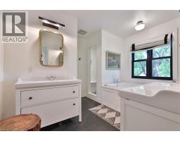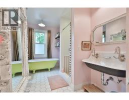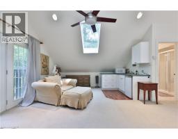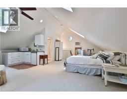 Chic Farmhouse Elegance Steps from the Lake Nestled in one of Oakville’s most beloved enclaves, 52 Kerr Street is a timeless blend of farmhouse charm and refined design. This four-bedroom home sits on a lush 60 × 160 ft lot surrounded by mature trees, just steps from the lake with peak views of the lake from one of the bedrooms, and walking distance to downtown’s fine restaurants, cafes, boutique shopping, marina, parks, and prestigious schools like Appleby College. Inside, every detail reflects craftsmanship and character. White shiplap walls, curated lighting, vintage-inspired fixtures, and layered textures create a warm, elevated feel. Principal rooms are bright and inviting, custom millwork, and stylish touches throughout. The finished attic level offers rare versatility—framed by vaulted ceilings and natural light, it’s perfect for a playroom, studio, teen retreat, or nanny suite, already roughed-in for skylights. The detached, 600 sq ft finished coach house above the garage features a separate entrance, kitchenette, and full bath—ideal for guests, a home gym, office, or income suite. Outdoors, enjoy golden-hour sunsets from the west-facing primary balcony or entertain in the sunlit, private backyard framed by mature foliage. It is a property that lives with soul, and one that will resonate deeply with those who value heritage character, designer finishes, and timeless appeal.. (id:46441)