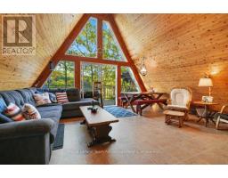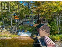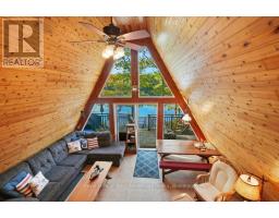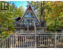 52 Windfall Lake Road - A-Frame Chalet on Water. Enjoy the cozy charm of this A-frame chalet tucked among the trees with 120 feet of frontage on beautiful Windfall Lake. Set on a private 0.25-acre lot this retreat blends comfort and character with two bedrooms plus a loft - perfect for family, guests or quiet weekends away. The kitchen and living area open to multiple walkouts leading to decks where you can relax and take in the water views. Outside enjoy lake life made simple - a bunkie for extra space, a shed for storage, two docks and a dry boathouse. On a private road just off highway 400 this lakeside hideaway offers peaceful seclusion with easy access. A place where mornings start with coffee by the water and end with sunsets over the trees - naturally beautiful, quietly yours. (id:46441)