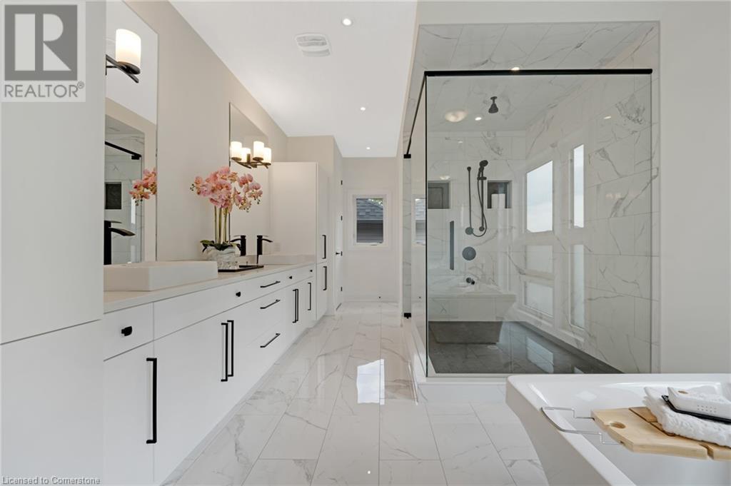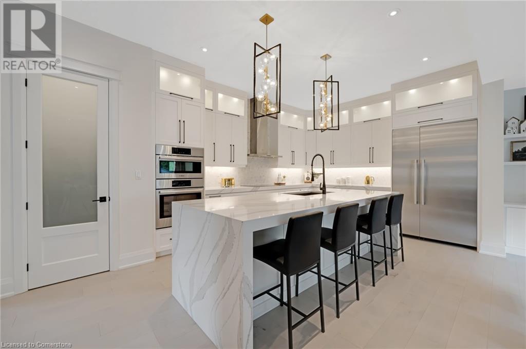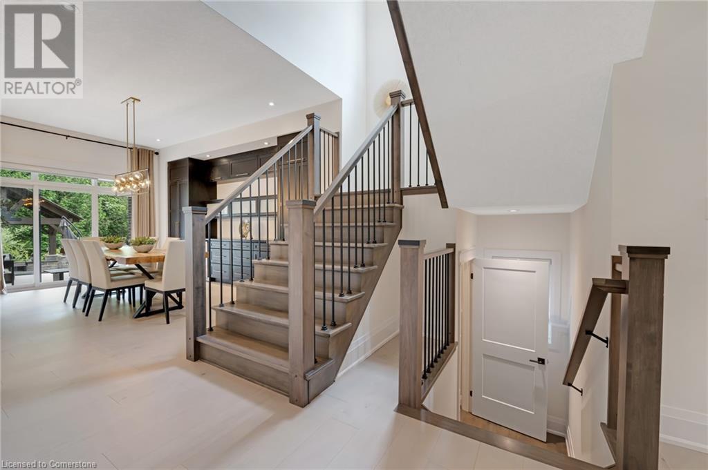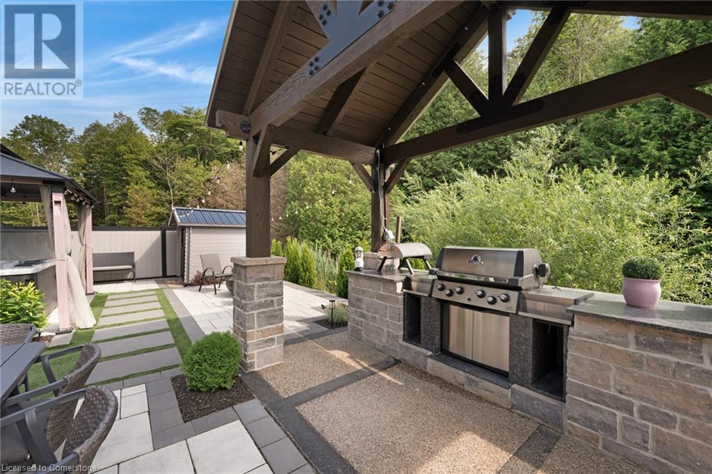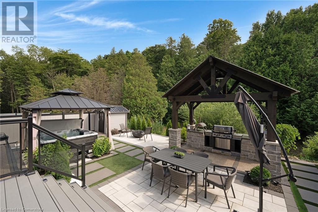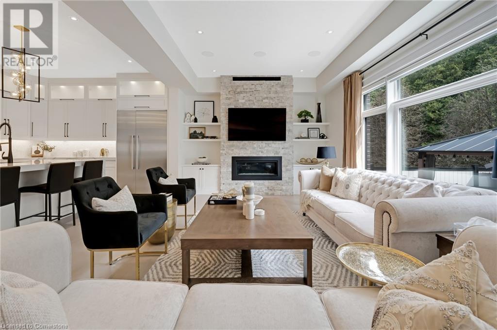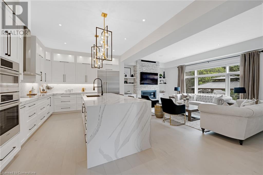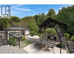 Luxury Living Meets Modern Design at 521 Bridgemill Crescent! Welcome to this stunning, custom-designed home offering over 4,500 sq ft of high-end finishes and thoughtful details throughout. With 5 spacious bedrooms and 6 luxurious bathrooms, this exceptional property is perfect for multigenerational living or those who love to entertain in style. Step inside to soaring 10-ft ceilings on the main floor and 9-ft ceilings on the second, complemented by rich maple hardwood flooring and elegant rod iron spindles on the staircase. The open-concept main living area features a bright and inviting layout, anchored by a cozy gas fireplace and highlighted by built-in dining cabinetry and custom surround sound throughout the home. The gourmet kitchen is a true showstopper, equipped with built in stainless steel appliances, a walk-in pantry, and oversized Cambria quartz countertops with a dramatic waterfall edge. Second floor family room offers vaulted-ceilings and electric fireplace - a perfect blend of comfort and sophistication. Upstairs, each of the 4 bedrooms features a private ensuite, offering both privacy and convenience. The primary suite is a private retreat, complete with a walk-through closet, private balcony, and a spa-inspired ensuite featuring double sinks, a soaker tub, and an expansive glass shower. The fully finished basement offers in-law potential, boasting engineered hardwood floors, a full kitchen, bedroom, full bath, an additional room that can be used for an office or gym, and a spacious living area. Outside, enjoy a fully upgraded backyard oasis with a hot tub, custom outdoor kitchen, stone retaining wall, and direct access to private greenspace the perfect backdrop for outdoor living and entertaining. Located in a highly desirable Lackner Woods neighbourhood, 521 Bridgemill Crescent blends luxury, comfort, and function in one remarkable package. (id:46441)