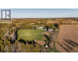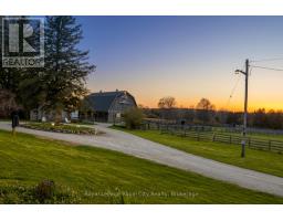 Nestled on a picturesque lot in the charming small town of Erin, this exquisite hobby farm spans 71.91 acres of meticulously cultivated farmland. The property boasts a private pond, outbuildings, and lush pastures. The original stone farmhouse from 1861 has been thoughtfully preserved with stone feature walls blending the old with timeless updates. Upon entering, guests are welcomed into a meticulously designed interior filled with natural light and elegant hardwood floors.The chef's kitchen is the heart of this home, fit with white cabinetry, sleek countertops, and a charming farmhouse sink. A formal dining room, accommodating eighteen guests, offers a remarkable setting for gatherings, framed by large windows with sweeping field views. Multiple living spaces, including a rustic great room with exposed stone and a cozy den, provide an atmosphere of warmth and comfort. Upstairs, the spacious primary suite includes a five-piece en-suite and a walk-in closet. Just off this, find three beautifully appointed guest rooms.The backyard is an entertainer's paradise, featuring an in-ground pool, lounging areas, and a landscaped patio. This home also includes a three-bed, two-bath apartment with walk-out basement, creating two self-sufficient dwellings, ideal for multigenerational living. Enhancing the estate are substantial outbuildings, including a 30x34ft drive shed with a ten-foot sliding door, concrete floor, insulated walls, and hydro. The 50x35ft horse barn features 8 stalls [potential for 9], a feed/tack room, and StableComfort mats in each. Four large summer grazing paddocks and three small winter paddocks, all with run-in sheds, complete the setup. It has front and rear access, a hay loft for 1,000 bales. The 40x35ft garage is perfect for hobbyists, part of the original farm, was re-shingled in 2025. Chestnut Ridge Farms is a once-in-a-lifetime opportunity that epitomizes country living on a hobby farm, offering space to breathe, grow, and put down your roots. (id:46441)