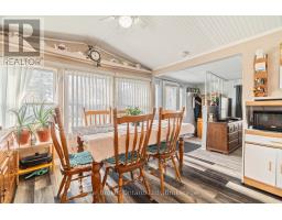 Nestled in the all-season section of Maple Leaf Acres Park, this cozy 2-bedroom, 1-bathroom residence offers a peaceful lifestyle with year-round park amenities. Step inside to find a welcoming living area with a beautiful fireplace and a kitchen updated with fresh flooring in 2024, pairing beautifully with recent flooring throughout the home (last 5 years) to create a modern yet inviting ambiance. The bathroom features a lovely skylight, filling the space with natural light and enhancing your daily routine. Both bedrooms provide comfort and tranquility, with thoughtful details like bright windows (replaced within the last 10 years) and ample closet space. Outside, the property includes a versatile shed equipped with hydro, ideal for storage or a workspace. Enjoy year-round efficiency with rental propane tanks, with the sellers 2023 propane costs totaling $1,260. The homes 2014 roof and additional features, such as a remote-controlled fireplace, reflect careful upkeep and comfort. Maple Leaf Acres offers two recreational centers, an outdoor swimming pool, a gated playground, and a sports field. Residents enjoy access to an indoor pool, hot tub, baseball diamond, and a take-out restaurant. The park provides lovely walking trails, a community garden, and even a boat launch onto Belwood Lake. Electric golf carts are permitted, making it easy to explore the grounds. Roads and common areas are maintained year-round, with active participation in local recycling programs. Surrounded by a close-knit community, this property offers easy access to the park's extensive amenities perfect for relaxed, all-season living. (id:46441)