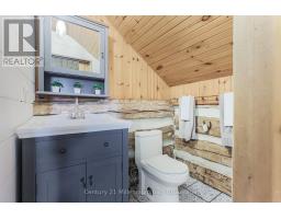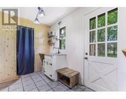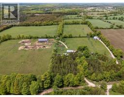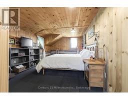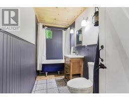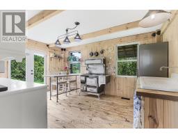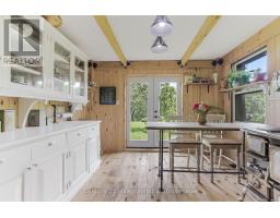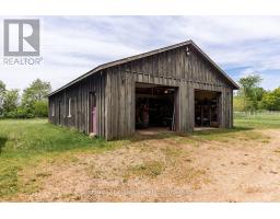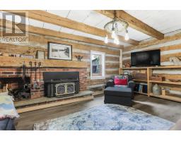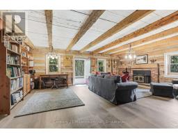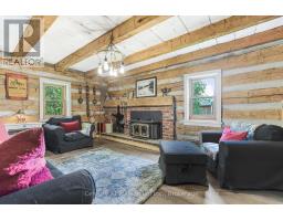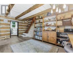 Set on 46 acres along the clean, cool waters of the Rocky Saugeen River, this log farmhouse is one of the last remaining century farms in Grey Highlands . Originally built in the 1880s and expanded in the 1970s, it combines historic features with modern upgrades. The main level of the home features an updated kitchen with a new garden door that brings in natural light. Upstairs, the primary bedroom offers wide plank floors, a walk-in closet, a 2-piece bathroom and could be converted back into 2 bedrooms. The home also includes a den that could be used as an office or guest room, and a modern laundry area with a new washer and dryer. Updates include a steel roof (2021), a 200-amp electrical panel, a generator plug, and a 2022heat/cooling pump with a backup electric furnace. A wood insert stove adds extra heat during the winter. The land includes approximately 25 workable acres currently seeded in regenerative hay crops. Approximately 15 acres are securely fenced and ready for hobby farming or equestrian pursuits. There are five paddocks with two electric outlets and one no-freeze hydrant for easy winter care. Original fence rows and walking trails lead to the Rocky Saugeen river. Outbuildings include a 60' x 88' board and batten barn built in 2020 with hydro and water, and a 30' x 50' detached garage/shop, also serviced with hydro and water. Additional structures include a chicken coop, woodshed, and a small animal shelter cat condo. Located just minutes from Markdale and a 35-minute drive to Owen Sound, this home places you in the heart of four-season recreation with skiing, hiking, fishing, paddling, snowmobiling, and more surrounded by the natural beauty of waterfalls, trails, and rivers. (id:46441)