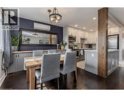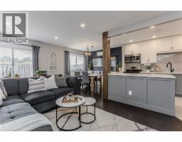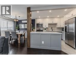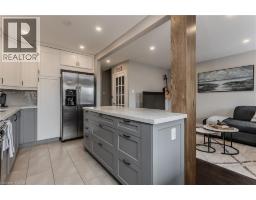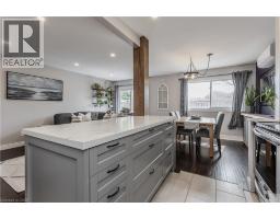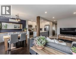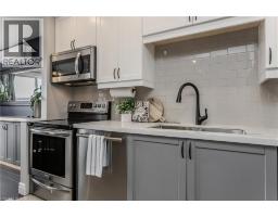 Welcome to this beautifully maintained townhouse condo, perfectly suited for growing families seeking comfort, style, and convenience. Nestled in a family-friendly neighbourhood just steps to everyday essentials and a short walk to the lake, this home offers the ideal blend of lifestyle and location. From the moment you arrive, the charming curb appeal sets the tone with a mature tree, interlock walkway, covered cedar wood porch-an inviting space to unwind, and new front door with premium retractable phantom screen (2019). The garage offers added convenience with bonus storage above. Inside, the main level showcases a bright, open-concept layout with wood/tile flooring throughout, skimmed ceiling and pot lights (2022) enhanced by smart switches. A welcoming foyer with wainscoting leads into the heart of the home. The fully renovated kitchen (2025) is a standout, featuring premium quartz countertops, centre island, custom cabinetry, subway tile backsplash, SS appliances, and a new Bosch dishwasher (2025), all accented by a warm white oak wood beam. The dining area includes a built-in credenza, while the living room offers a seamless walkout to the backyard-perfect for everyday living and entertaining. A convenient 2-piece powder room completes the main level. Upstairs, you'll find three generously sized bedrooms and a 4-piece main bathroom with an oversized vanity, providing plenty of space for the whole family. The fully finished lower level adds valuable living space with a spacious rec room, dedicated home office area, laundry, and ample storage area with built-in racks. Pot lights with smart switches are continued throughout. Step outside to a fully fenced backyard featuring a slate grey composite tile patio, awning, and green space for kids or pets to play. Additional perks include a fully updated HVAC system, with ductless units. A fantastic opportunity to enjoy turnkey living in a vibrant, family-oriented community close to shopping, parks, and more. (id:46441)