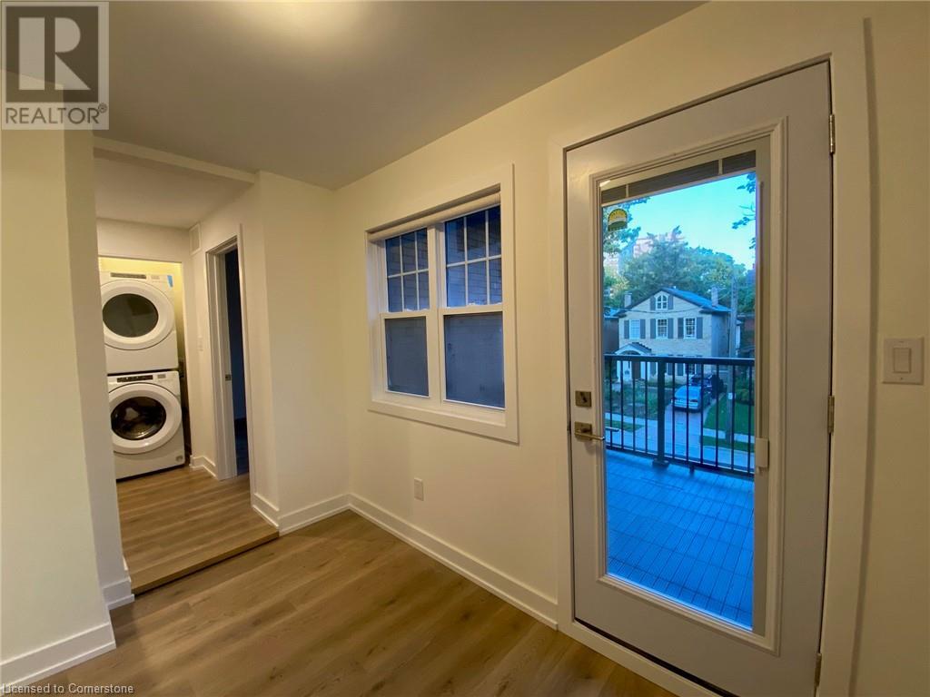 Beautifully renovated 2-bedroom, 2-bathroom apartment available October 1, occupying the ground and second floors of a century triplex in Kitchener’s Heritage Olde Berlin Town. This is not a basement and not the entire house—it’s one of three units in a well-maintained triplex. The bright, energy-efficient unit features foam-insulated exterior walls, new windows with blinds, wood-look vinyl flooring, and a modern kitchen with stone countertops and stainless steel appliances. Includes two bathrooms (one with a glass shower, one powder room), in-suite laundry, and exclusive use of a private balcony. Includes 2 tandem parking spaces. Utilities (hydro, gas, water) are separately metered and paid by tenants. Located on a quiet, tree-lined street steps to Civic Centre Park, Kitchener Market, the Public Library, Centre In The Square, and more. Walk to the Innovation District, transit hub, Victoria Park, Google, Communitech, UW Pharmacy, McMaster Medical Campus, and top local amenities. (id:46441)