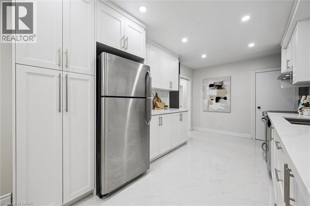 Newly renovated LEGAL DUPLEX - Three bedrooms up, three bedrooms down and comes completely vacant! Live in one half and rent the other or choose your tenants for both units and start at market rents from day one. The home has just been renovated - new 6-car asphalt driveway, all new porcelain tile in the entranceway, kitchen and hallway. New laminate flooring in the living room, dining room and all three main level bedrooms, new kitchen with quartz counters and stainless steel appliances, new bathroom vanity with stone counters, new tub with all new tile surround. There is also newer trim, crown moulding and added pot lights. There is a private rear entrance to the three-bedroom basement apartment with an updated kitchen, laminate flooring in the family room and all three bedrooms which are a fantastic size. There is a very convenient self-contained shared laundry with private access for each unit. Situated on a corner lot, surrounded by parks, employment and the Conestoga Guelph campus. A rare find! (id:46441)