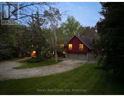 Nestled on a secluded, park-like acre within the Town of Collingwood, this exceptional estate blends refined luxury with natural beauty. Surrounded by towering mature trees, perennial gardens, and a spring-fed pond from Silver Creek, this renovated five-bedroom, five-bathroom residence offers the ultimate in privacy and tranquility. Designed for multi-generational living or sophisticated entertaining, the home features flexible dual-family layouts, with separate quarters ideal for extended family or guests. The elegant interior showcases contemporary finishes, high-end renovations throughout. Enjoy the convenience of upper and lower-level laundry rooms and the peace of mind of modern infrastructure, including municipal water, natural gas, and fibe internet. Step outside to your own four-season oasis a series of breathtaking outdoor living spaces perfect for gathering or relaxing. Unwind in the newly added outdoor sauna, or entertain at the stunning custom outdoor bar featuring a roll-up window, loft sleeping quarters, and generous storage. A heated and cooled three-car attached garage with workshop offers plenty of space for all your recreational gear and projects. Ideally located just minutes from skiing, golf, Georgian Bay, scenic trails, and Collingwoods charming shops and dining this rare offering truly captures the best of luxurious country living with urban convenience. (id:46441)
