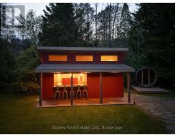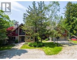 Nestled on a secluded, park-like acre within the Town of Collingwood, this exceptional estate blends refined luxury with natural beauty. Surrounded by towering mature trees, perennial gardens, and a spring-fed pond from Silver Creek, this renovated five-bedroom, five-bathroom residence offers the ultimate in privacy and tranquility. Designed for multi-generational living or sophisticated entertaining, the home features flexible dual-family layouts, with separate quarters ideal for extended family or guests. The elegant interior showcases contemporary finishes, high-end renovations throughout. Enjoy the convenience of upper and lower-level laundry rooms and the peace of mind of modern infrastructure, including municipal water, natural gas, and fibe internet. Step outside to your own four-season oasis - a series of breathtaking outdoor living spaces perfect for gathering or relaxing. Unwind in the newly added outdoor sauna, or entertain at the stunning custom outdoor bar featuring a roll-up window, loft sleeping quarters, and generous storage. A heated and cooled three-car attached garage with workshop offers plenty of space for all your recreational gear and projects. Ideally located just minutes from skiing, golf, Georgian Bay, scenic trails, and Collingwood's charming shops and dining - this rare offering truly captures the best of luxurious country living with urban convenience. (id:46441)