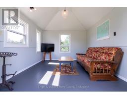 Riverfront Living in the Heart of Parry Sound -- Nestled along the tranquil Seguin River, this charming semi-detached home offers a rare blend of nature and convenience in one of Parry Sounds most sought-after locations. Featuring two bedrooms and nearly 800 sq. ft. of living space, the home is set on a 33' x 121' lot with a covered deck where you can unwind and enjoy peaceful river views. The property invites future possibilities with room for an addition, while the auxiliary riverside building provides incredible bonus space, ideal for a games room, art studio, yoga retreat, or whatever inspires your lifestyle. Slip a kayak directly into the river and explore the scenic waterways, or simply relax in the natural serenity at your doorstep. Perfectly situated within walking distance to downtown amenities, including shopping, restaurants, hospital, and more, this home offers both lifestyle and convenience. Whether you're seeking a starter home, a riverside retreat, or a strong rental investment in Parry Sound's growing market, the opportunities are endless on River Street. (id:46441)