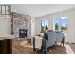Baseball season is just around the corner, and here, the games are practically in your backyard! Tucked away on a quiet cul-de-sac in Mount Forest, this Marlanna Homes semi-detached new build offers a level of privacy that's hard to find. Connected only by the garage, which is finished in clean Trusscore, you'll enjoy convenient access to both the home and backyard while still feeling nicely set apart. One of the standout features of this property is the view from the back deck, perfect for catching local ball games and soaking in those evening sunsets! Inside, the main floor is open, bright, and thoughtfully designed. A stunning stone fireplace anchors the living room, adding warmth and character. The kitchen is a true highlight, custom-built by Barzotti with quartz countertops, a functional island for extra seating, with all appliances included. Luxury vinyl plank flooring runs seamlessly throughout, creating a cohesive and modern feel. Upstairs is ideal for family living, with three bedrooms and a dedicated laundry room, which means no more hauling baskets up and down stairs! The primary suite offers a peaceful retreat, complete with a walk-in closet and a deep soaker tub. Downstairs, the fully finished basement adds even more versatile living space-perfect for a rec room, home gym, or both, and includes an additional full bathroom. With immediate possession available, Tarion warranty coverage, and a 50-year shingle warranty, this home is truly move-in ready. Modern comfort, quiet surroundings, and no waiting, just unpack and enjoy! (id:46441)