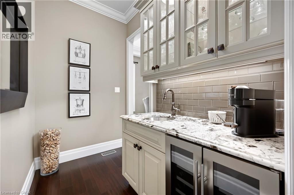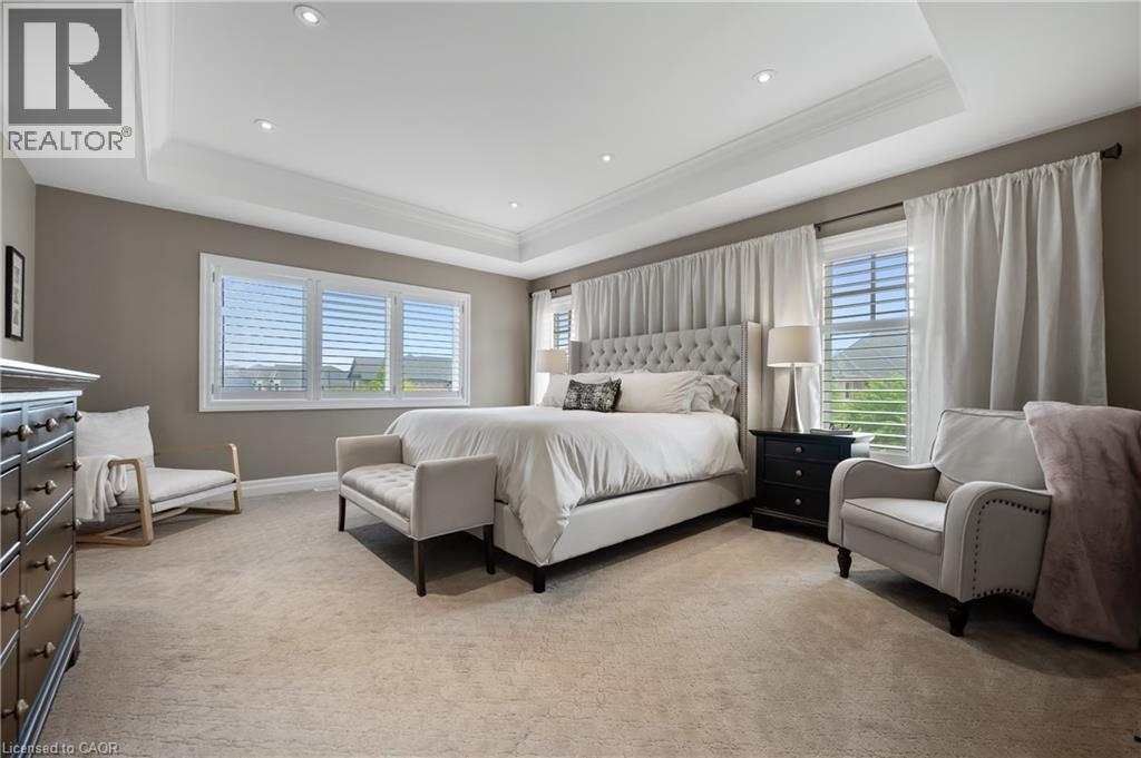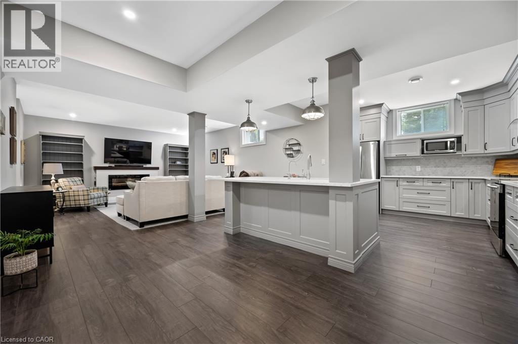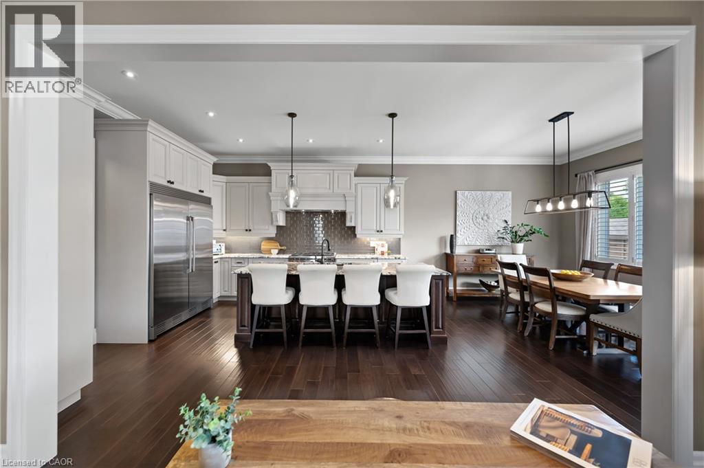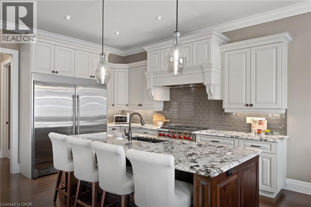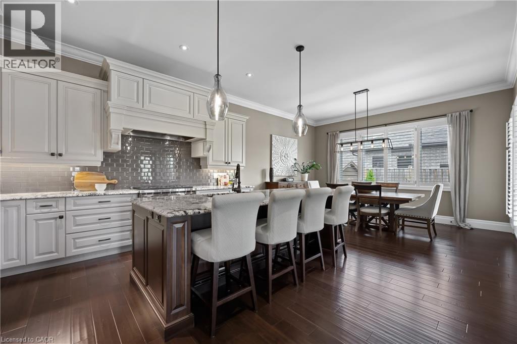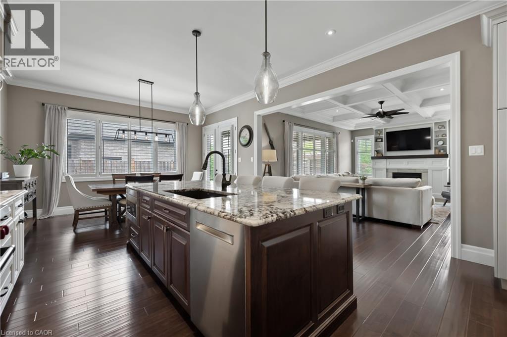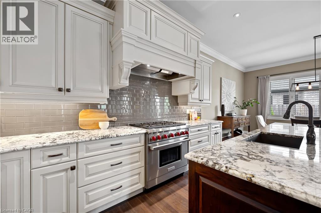 Luxury Living w/ Accessory Apartment in Carriage Crossing! This spectacular, custom Klondike-built executive home is nestled on a premium corner lot in Waterloo’s prestigious Carriage Crossing. Loaded w/ luxurious upgrades, & offering 5,100+ SF of beautifully finished living space, this 5 bed, 5 bath home includes a full accessory apartment/in-law suite w/ private walk-up—ideal for extended family, guests, or added income. Step inside to a grand foyer that opens to a front office/living rm & a formal dining rm w/ tray ceiling, seamlessly connected to the servery & butler’s pantry. At the heart of the home is the designer kitchen, featuring granite counters, premium appls, under-cab lighting, lrg centre island, & a bright breakfast area w/ walkout to the bkyard. The adjoining great rm features coffered ceilings, a gas FP, & custom built-ins. A powder rm & mudrm w/ built-ins complete the main flr. Upstairs, the primary suite offers tray ceiling detail, walk-in closet, & a spa-like 5-pc ensuite w/ soaker tub, tiled glass shower, dual vanity. 3 additional bedrms all have walk-in closets & bathrm access—one w/ a 3-pc ensuite, & 2 sharing a 4-pc Jack & Jill bath. Convenient 2nd-flr laundry. The finished walk-up basement functions as a full accessory apt w/ oversized windows, modern kitchen, spacious family rm w/ electric FP, 5-pc bath, lrg bedrm w/ walk-in closet, & ample storage. Throughout: 10' main flr ceilings, hrdwd flrs, porcelain tile, crown moulding, ceiling treatments, California shutters, potlights, upgraded lighting, & granite/quartz counters. Exterior features interlock driveway (parking for 7), manicured landscaping, covered patio, private/partially fenced yard w/ shed. Prime location: top rated schools, RIM Park, Grey Silo Golf Club, Farmer’s Market, trails, parks, & major employers. Quick HWY access, universities, & amenities. A rare opportunity to own a move-in ready luxury home w/ unmatched versatility in one of Waterloo’s most desirable neighbourhoods! (id:46441)