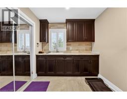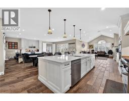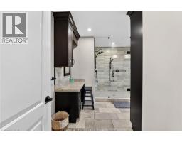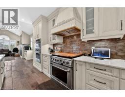 This custom built home commands attention. Set on a spacious 1 acre lot in the community of St. Anns, this stunning 2-storey home delivers over 6,500 sq ft of living space and two in-law suites that are ideal for multi-generational living. This home combines scale, craftsmanship, and a level of interior finish rarely found at any price point in West Lincoln. From the moment you step inside, the level of craftsmanship is evident. A grand two-storey foyer features polished tile and a dark hardwood staircase with iron spindles. The main level flows seamlessly between the great room, kitchen, and dining area. The chef's kitchen is a true showpiece: custom soft-grey cabinetry, a large quartz island, professional-grade gas range, double wall oven, and built-in fridge/freezer — with direct walk-out access to a covered outdoor sitting area. Inside or outside, this space was built to entertain. The family room is anchored by a cathedral ceiling, arched transom window, gas fireplace, and built-in media cabinetry. The main floor also features a dedicated home office, den, 3-piece bathroom, laundry room & mud room. The generous primary suite has engineered hardwood floors and a spa-quality ensuite complete with a freestanding soaker tub, frameless glass shower with dual shower heads, a double vanity with dark cabinetry and granite counters. Additional bedrooms are well-sized with engineered hardwood floors and quality finishes.A 5-piece bathroom serves the upper level with a tub and shower combination and double vanity. The finished walk-out basement is home to two completely self-contained in-law suites — each featuring a private kitchen, open-concept living area, bedroom, and full bathroom. The property also includes an attached garage with parking for 3 cars, a large private driveway, a covered front porch, and a shed. Two furnaces service different portions of the home, while one tankless hot water tank services the whole home. (id:46441)