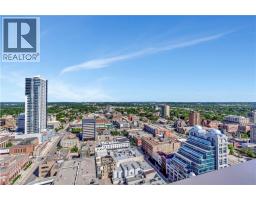 Experience elevated downtown living in this beautifully designed 2-bedroom, 2-bathroom condo in the heart of Kitchener. Offering 1,163 sq. ft. of bright, thoughtfully planned living space, this spacious unit features large windows that fill the home with natural light and showcase sweeping city views. The modern kitchen is both stylish and functional with quartz countertops, ample cabinetry, and a layout that flows seamlessly into the open living and dining areas, creating a comfortable space for everyday living or entertaining. Step outside to the impressive wrap-around balcony, providing plenty of room to relax and enjoy the skyline from multiple vantage points. Inside, upgraded flooring adds a polished feel throughout the unit, while the primary bedroom offers a well-appointed ensuite with a spacious walk-in shower. Ensuite laundry and a dedicated parking space add to the convenience. Located in one of Kitchener’s most connected neighbourhoods, this home places you just steps from the LRT, City Hall, Google, and the region’s thriving tech hub, along with an incredible selection of restaurants, cafés, and shops. Victoria Park is also nearby, offering beautiful green space and year-round events. Residents enjoy a wide range of amenities including a rooftop jogging track, fully equipped exercise room with spin bikes, outdoor yoga space, dog wash station, third-floor sun terrace, and a shared BBQ area. A fantastic opportunity to enjoy modern condo living in the centre of it all. (id:46441)