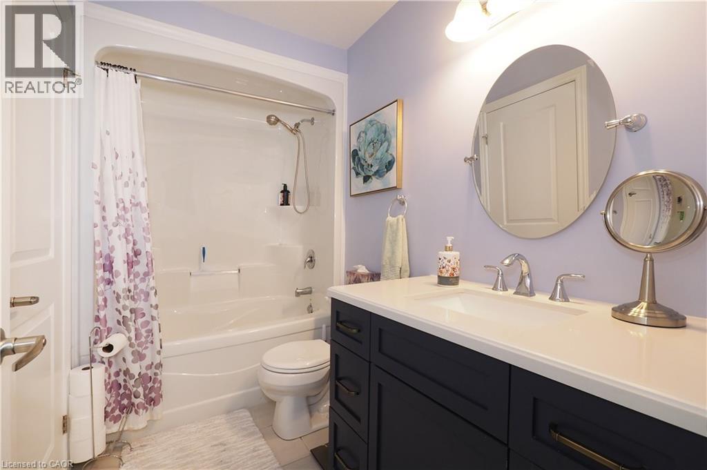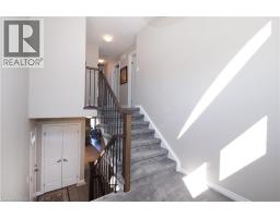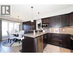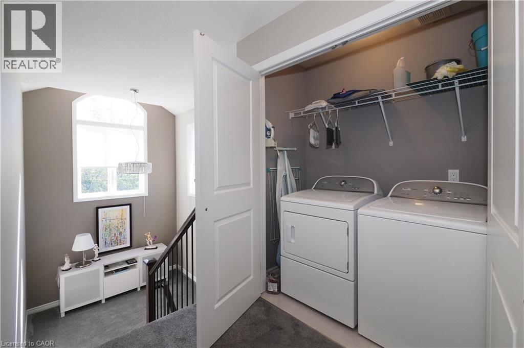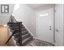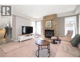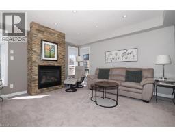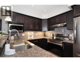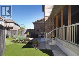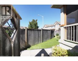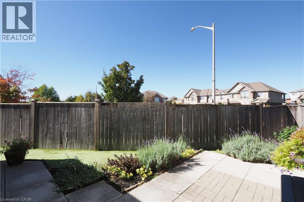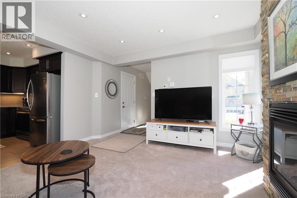 SIMPLY OUTSTANDING freehold townhome located on a child safe cul de sac. Fabulous unique design with all the bells and whistles, vaulted ceilings and upgrades galore. Natural sunlight fills every room of this END UNIT with gorgeous south west exposure. Inviting front foyer entrance leads to the upgraded kitchen/dinette featuring granite counter top with raised breakfast bar, all stainless appliances and stove vent, extended full length wall pantry. Cozy main floor living room highlighted by a full floor to ceiling stone gas fireplace. Stairs to upper floor landing that is large enough to provide the perfect home office work space. There are 3 spacious bedrooms, the primary has double closets and walk through access to the main bath. Convenient full size upper floor laundry closet saving you a trip down to the basement. The lower level has a finished rec room, 2pc powder room, utility and storage room under the landing. Enjoy those summer sunsets from the enclosed porch which leads to the back patio The backyard completes this home with a fully fenced landscaped yard with low maintenance artificial turf. There is also a rough-in for a future hot tub. Single garage has inside access to main foyer so you don't have to walk around to front. Handy location with super connection to Cambridge, Guelph and 401, steps to area schools and handy to all amenities. This one is move in ready for flexible possession in November, Call your Agent today to view and oh by the way, there are NO ADDED MONTHLY FEES it's a freehold. (id:46441)