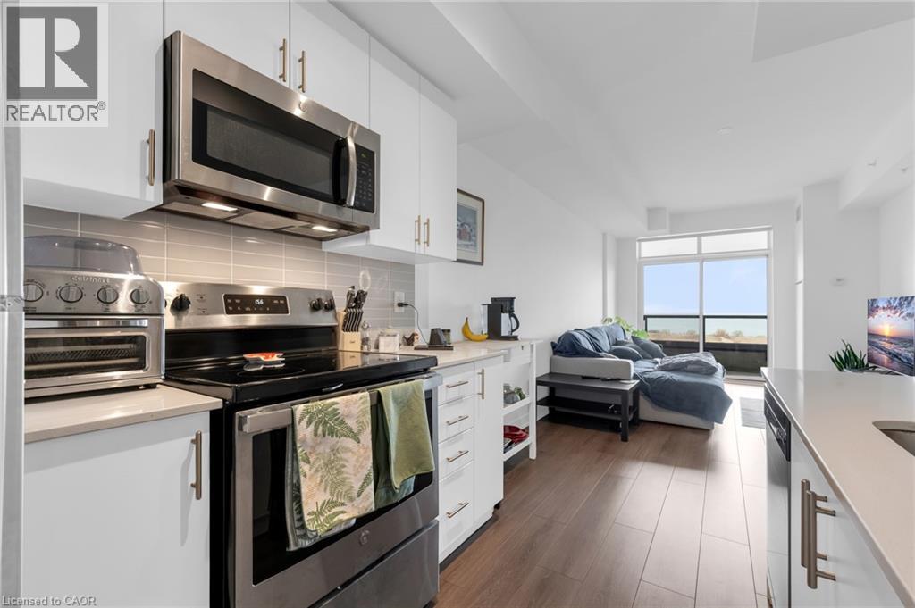 Welcome to Lakeside Waterfront Living 1 BDRM plus DEN -THE BEACH HOUSE MODEL over 800 sq ft - Impressive open concept UNIT Kitchen Island seating at breakfast bar w great space for meal prep, double sink and an abundance of white cabinets, featuring ceramic backsplash! Neutral decor and floor to ceiling windows throughout. Spacious primary bedroom with a double door entry semi ensuite privilege, floor to ceiling windows w a view, plus a great sized walk in closet. Home office/den or guest accommodation. Spacious living room w walkout to oversized BALCONY! 4 piece bath offers a soaking tub, vanity storage and neutral colors. ENJOY the Stunning Unobstructed View of Lake Ontario North Eastern facing Sunrises and views of Downtown Toronto in the distance. Luxury and Lifestyle waterfront community w parks, walking trails, spas, marina, boat docking, beaches, boutique shopping, restaurants and more. Super Easy Highway Access only Minutes to Burlington, or St Catharines. This unit offers 2 heated side by side underground parking spots and a very spacious storage locker. Experience the Convenience with major shopping and amenities within 5 mins drive. Grimsby GO bus service is walkable. Building amenities offering a gym, yoga studio, billiards room, library book exchange, a bbq terrace patio w full sun all day, party room available for bookings gatherings and events. Full time Concierge/security w nighttime patrol. Package delivery to secure area at concierge. Includes Water...... Hydro and internet are not included. Room Sizes Approx LOVE WHERE YOU LIVE (id:46441)