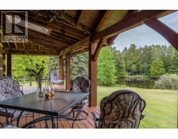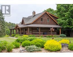 Beautiful riverfront property with log home overlooking ponds on 37 acres. The home is approximately 1500 square feet and features a central stone chimney, exposed timbers, antique hardwood flooring, 3 bedrooms and 2 baths. The lower level includes a family room, a flex room that would be suitable for a bedroom and a dedicated storage/utility room. The wrap around porch gives picturesque views of the natural landscape and both the Beatty Saugeen River and the Norm Reeves Creek. There is a detached 24x24 garage. With trails throughout the property this can be your very own playground. An impressive property that shows incredible pride of ownership. This very private setting is on a paved road only 20 minutes to Mount Forest, 15 minutes to Durham.  Please - do not drive in the driveway without an appointment. (id:46441)