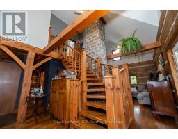 Beautiful riverfront property with log home overlooking ponds on 37 acres. The home is approximately 1500 square feet and features a central stone chimney, exposed timbers, antique hardwood flooring, 3 bedrooms and 2 baths. The lower level includes a family room, a flex room that would be suitable for a bedroom and a dedicated storage/utility room. The wrap around porch gives picturesque, views of the natural landscape and both the Beatty Saugeen River and the Norm Reeves Creek. There is a detached 24x24 insulated garage. With trails throughout the property this can be your very own playground. An impressive property that shows incredible pride of ownership. This very private setting is on a paved road only 20 minutes from Mount Forest, 15 minutes to Durham. Please - do not drive in the driveway without an appointment. (id:46441)