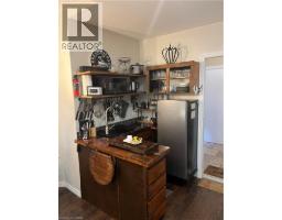 Tucked discreetly behind a quiet Dundas storefront, this fully furnished main-floor studio offers a rare blend of privacy, style, and convenience right in the heart of downtown. Thoughtfully designed with a unique open-concept layout, the space features distinct areas for sleeping, relaxing, and dining, creating a comfortable and functional living experience. The nicely appointed kitchen is ideal for everyday use with apartment sized fridge, cooktop and microwave, while the modem 3-piece bathroom adds to the ease of turnkey living. Perfect for professionals or those seeking a low-maintenance lifestyle, this charming unit also includes one dedicated parking space—an added bonus in this prime location that won't last long. (id:46441)