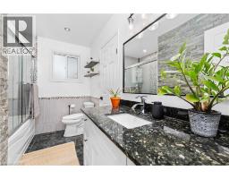 STUNNINGLY UPDATED HOME + BACKING ONTO GREEN SPACE – THIS IS THE ONE!!! This charming detached 4-level backsplit boasts 3 bedrooms, 2 bathrooms, and is located in one of Grimsby’s most sought-after family-friendly neighbourhoods. Backing onto peaceful Pinewood Park and surrounded by mature trees, this beautifully updated home provides the kind of privacy and outdoor connection that’s hard to come by, especially in town. The low-maintenance yard is quiet, easy to care for, and provides direct access to the park—a serene extension of your outdoor space. The main level is gorgeous and has open-concept living and dining areas along with a stunning custom-upgraded kitchen featuring quartz countertops, a large center island with seating, ample storage, and hardwood flooring throughout. The lower level is bright and inviting, featuring large windows that fill the family room with natural light, a cozy gas fireplace, a 3-piece bathroom, and an additional bedroom. The fully finished basement includes a recreation room, office space, and laundry area—providing flexibility for work, play, and relaxation. Step outside to a fully fenced backyard complete with a newer deck and garden shed—perfect for summer gatherings or quiet evenings outdoors. With over 2,100 square feet of finished living space, Cresa separate entrance to the raised lower level (ideal for multi-generational living or a potential accessory suite), and proximity to schools, shopping, and the QEW, this home blends comfort, style, and convenience effortlessly. Set on a quiet crescent backing onto green space, this is truly the perfect family home—peaceful, practical, and ready for you to make it your own. (id:46441)