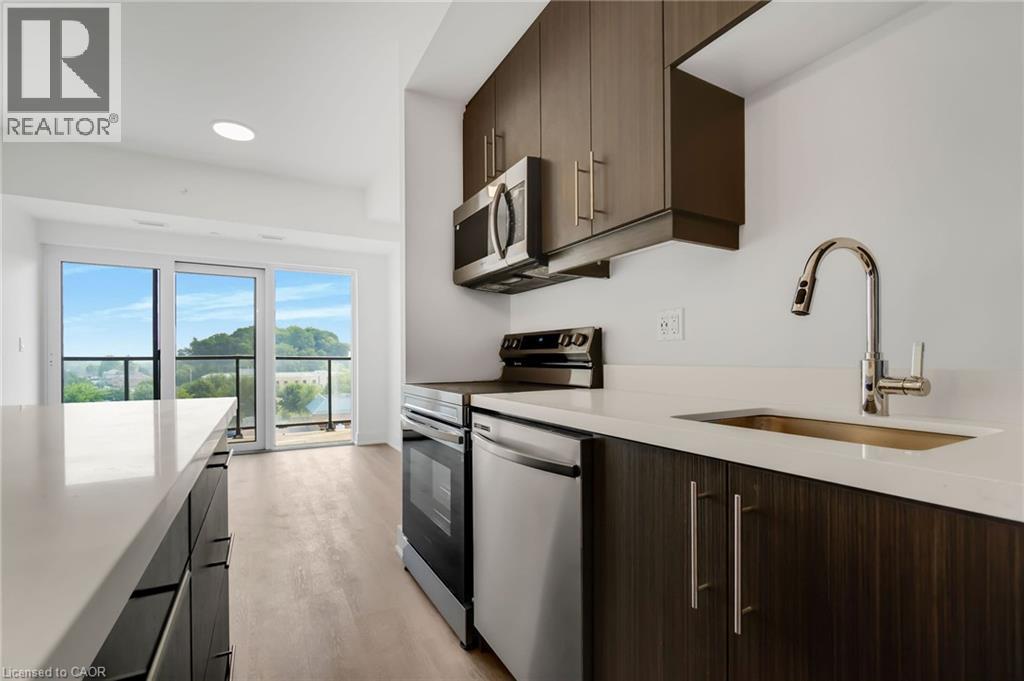 Discover modern condo living at Ambrose Condos! This spacious 1 bedroom + den + study, 2-bath suite offers a functional layout with a stylish kitchen with centre island, built-in microwave and convenient ensuite laundry. The generous den features sliding doors, perfect as a home office or second bedroom, while the bright study provides even more flexible space. Enjoy open-concept living and walk-out access to a large private terrace. State of the art amenities to include a fitness centre, yoga room, party room, rooftop terrace and more. Close proximity to parks, shopping, highway access and Wilfrid Laurier Brantford campus. Parking & Locker included. (id:46441)