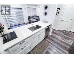 This conveniently located end-unit, 3-storey townhouse offers 3 bedrooms and 2 bathrooms with just over 1,400 sq. ft. of finished living space. The ground level features a welcoming foyer ideal for a home office or flex space, along with an attached single-car garage providing inside access. The main level showcases a modern kitchen with stainless steel appliances, quartz countertops, and a large eat-in island, a breakfast area, and patio doors leading to a private balcony. A sun-filled family room with large windows, a 2-piece bathroom, and stacked laundry complete this level. The upper floor includes three bedrooms and a full 3-piece bathroom. This home offers fully finished living across all three levels, with no traditional basement or backyard. Conveniently located close to the LINC, highway access, the lake, grocery stores, schools, parks, and other amenities. (id:46441)