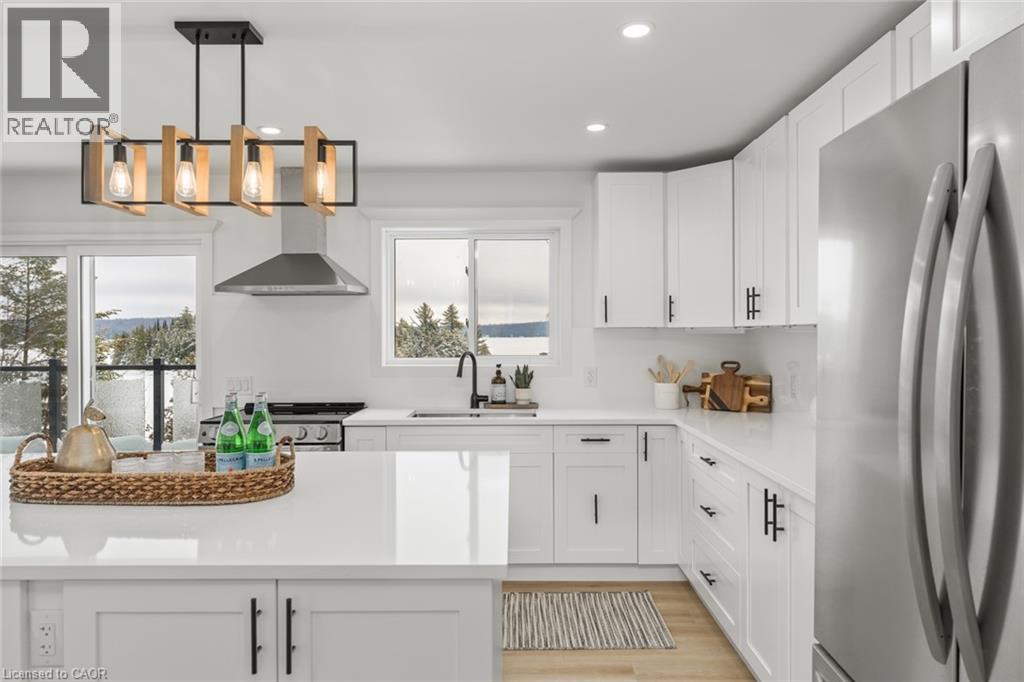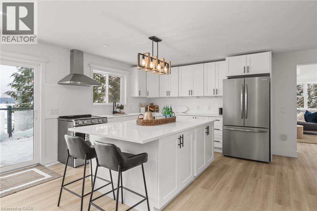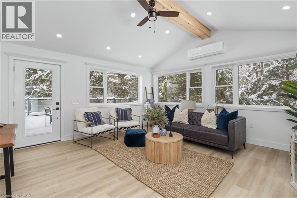 A rare opportunity to own a four-season beachfront cottage on iconic Kennisis Lake. Set back from the road with the lake behind the cottage, 5789 Kennisis Lake Road offers a layered sense of privacy that unfolds as you move through the property, creating a calm and intentional connection to the water. Kennisis Lake is one of the largest and most sought-after waterways in the Haliburton Highlands, known for its expansive boating, marina access, and long uninterrupted stretches of open water. This is big lake living with space to breathe and room to slow down. The year-round cottage has been completely rebuilt with long term ease and peace of mind in mind. Gutted to the studs and expanded with an addition, the home features all new septic, drilled well, electrical, insulation, siding, steel roof, landscaping, sauna, and hot tub. Every major system has been replaced. Inside, the cottage is bright and welcoming with private southeast facing lake views throughout. The main level offers three bedrooms, a full bathroom, and an open concept kitchen and dining area that naturally becomes the heart of the home, along with a spacious sunroom suited to every season. The lower level features a king bedroom with lake views, walkout access to the hot tub, and gentle steps leading down to the shoreline. Outdoors an expansive upper deck overlooks the lake for relaxed meals and evening sunsets, while a second deck closer to the shoreline offers a quiet place to unwind by the water. A brand new sauna tucked into the trees creates a private spa like escape. The shoreline is exceptional with hard packed sand and a gentle shallow entry. Close to Sir Sam’s Ski, golf, trails, and local amenities, this is where lake life feels simple again. Where days feel unhurried. Where the lake becomes part of your everyday rhythm. (id:46441)