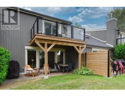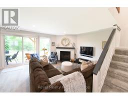 Beautifully Updated Condo with Panoramic Views in Cranberry Village. Welcome to this stunning, move-in-ready condo offering breathtaking panoramic views of the golf course, Niagara Escarpment, and Blue Mountain. Located in the highly sought-after Cranberry Village community, this bright and spacious three-bedroom, two-and-a-half-bathroom home is designed for comfort, style, and convenience. The open-concept main floor features an upgraded kitchen with crisp white shaker-style cabinetry, quartz countertops, stainless steel appliances and pot lights throughout the main floor. Flowing seamlessly into the dining and living areas, the space is anchored by a cozy wood-burning fireplace perfect for entertaining family and friends. Walk out to the private patio and BBQ space to soak in the natural beauty that surrounds you. Recently updated throughout, this home offers elegant, spa-inspired bathrooms with glass-enclosed showers, quartz counters, and sleek European-style cabinetry. Enjoy the 2024 renovations: balcony, plush, high-quality carpeting upstairs, enhanced lighting with new pot lights, flat ceilings and a fresh, modern paint palette. Furnace (2022), Water Heater owned (2018) and both bathrooms were renovated in 2018. Storage is plentiful with a dedicated storage locker, extra space under the stairs, and easy access to the crawlspace. Condo fees include cable, internet, windows, doors, decks, and shingles, providing peace of mind and easy living. Ideally located just minutes from Collingwood's vibrant downtown, ski hills, scenic trails, shopping, and Cranberry Marina. The renovated upper deck is the perfect place to relax, watch the sunset, and experience the best of four-season living. Condo Fees 638.67 + 62.15 (for group rate on internet/Cable). (id:46441)