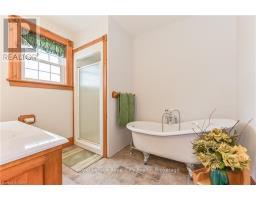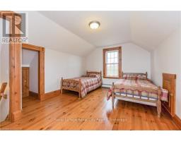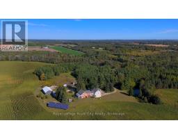 The perfect mixture, 65 acres of sandy well drained, rolling farmland, a hardwood bush, a pine forest, a pond and a large home, suitable for multi-generational living if desired, all tucked perfectly into this 86 acre country landscape. There are 2 large outbuildings, one very well maintained post and beam structure with hydro and a newer detached shop(8'4"x12' sliding door), wired for all your tools. The home, combines a Century Red Brick Farmhouse, lovingly cared for, with an addition custom built a little over 15 years ago to mimic the old world charm with large wood baseboards, trim and solid wood doors. A Wood Burning Stove, Heated Floors, a Geo-Thermal forced air system and Boiler baseboard system (with rough-in for outdoor wood burning furnace). There are many economical options to keep this large home warm and inviting, and also keep the power on with the automatic, whole home Generac Generator installed in 2023. There are 3 full bathrooms, 1 powder room and another just waiting for fixtures. On the older West Wing, there are 4 possible bedrooms and on the newer East Wing, there is a main level bedroom with ensuite and a large bedroom on the upper level that could be divided (with rough-in bath). The attached 2 car garage is oversized to fit a pick-up truck and underneath the garage is a clean and dry area that is currently used as the 'cantina' for salami and wine making. The 65 acres of farmland is currently leased. This home is one-of-a-kind, a must-see with so many options, great sandy loam soil for crops and livestock, or just a country residential paradise. (id:46441)