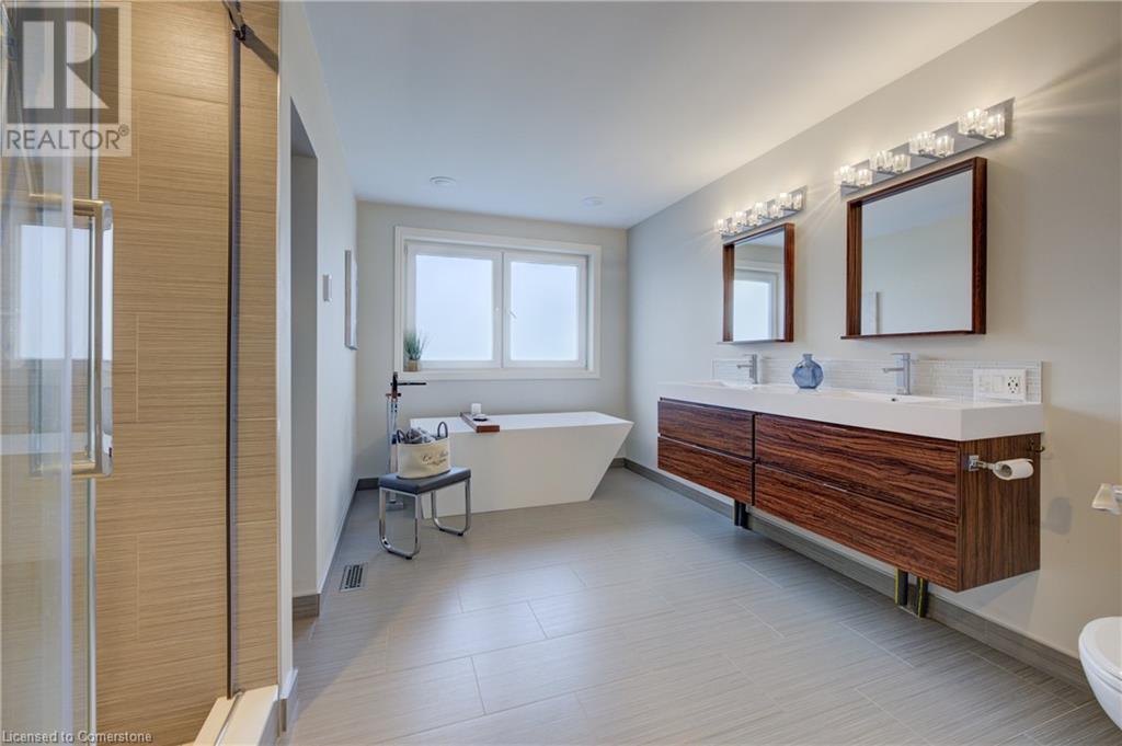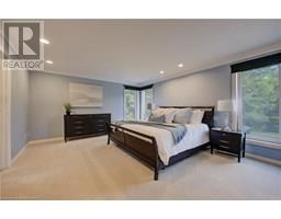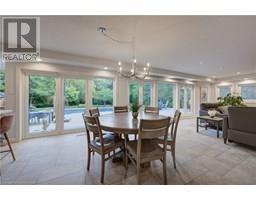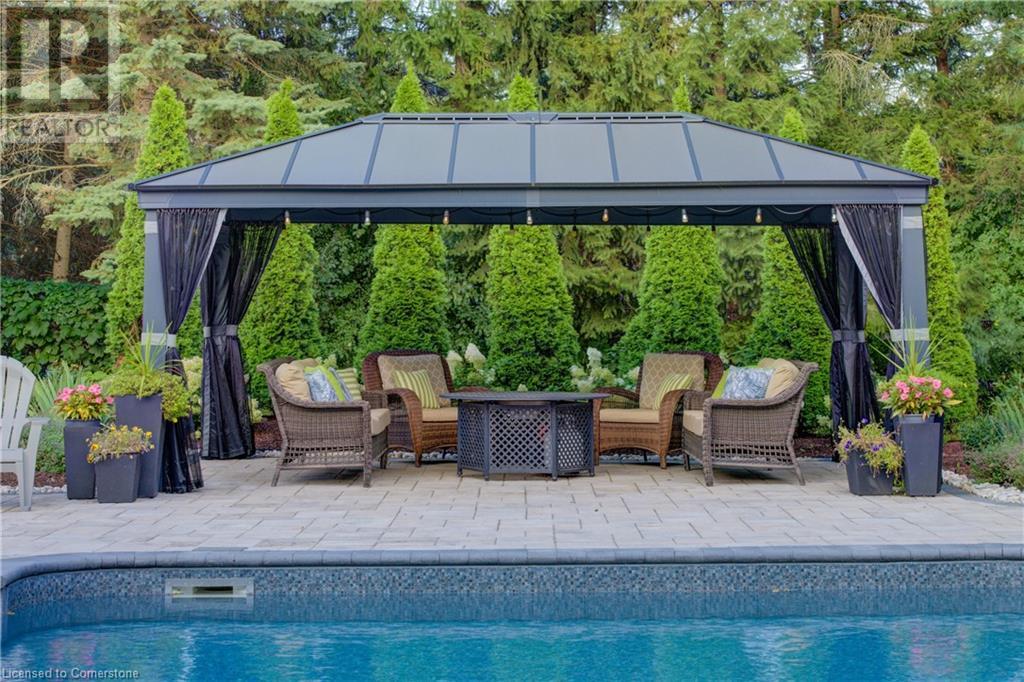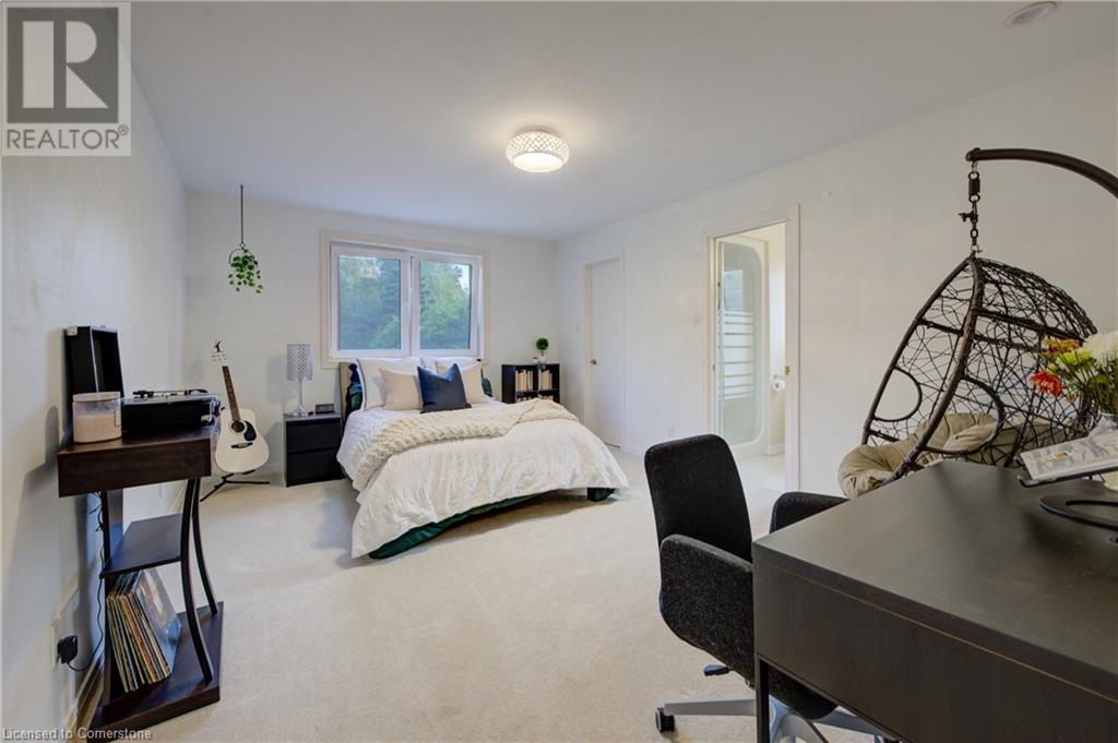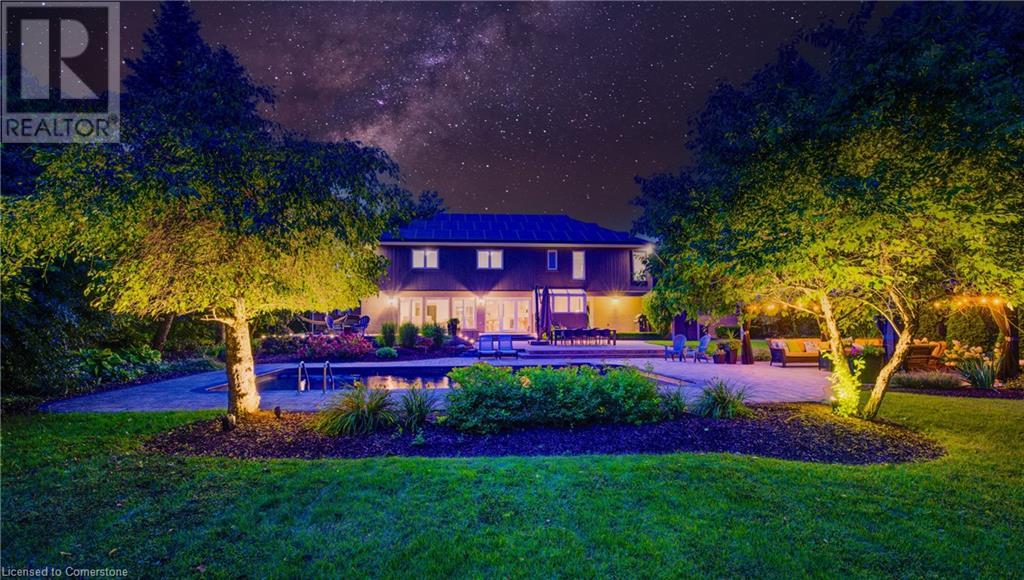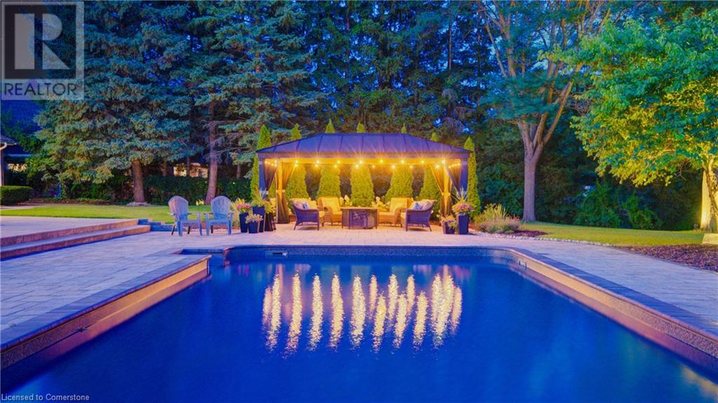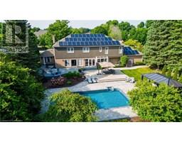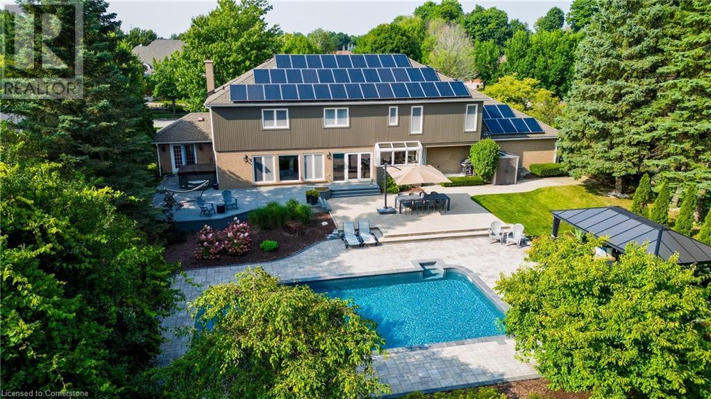 Relocate to desirable Colonial Acres in northeast Waterloo. Fantastic location minutes to internationally known Universities & College plus the future Waterloo Regional Health Network Hospital in the west end. Mature .620 acre lot on municipal water & sewer backing on heavily treed Anndale Park. This low traffic court presents architecturally custom homes offering privacy and a quiet atmosphere. Prime time is now to enjoy the sparkling inground pool, fresh decking, oversized gazebo and fenced yard space for children & pets to play. Inside, the front northeast to rear southern exposures fill the house daily with natural light through multiple windows. The whole main rear of the house is wall to wall windows beckoning you to enjoy the scenic views of the yard. The upper level offers 4 bedrooms, two with personal ensuite bathrooms plus a guest bathroom. Heated tile flooring, walk-in shower & freestanding tub in the upgraded primary 5 pc ensuite will be a popular spot for relaxation. The hub of the home is the modern kitchen with 6' x 5' centre island, quartz counters, two coolers plus a walk-in pantry. Don't miss the main floor laundry, 3 pc bathroom and mudroom closet ready for a busy family coming in from the garage. Two wood burning fireplaces anchor both the family room & main floor office. Celebrations can be held in the formal living & dining rooms. The finished basement is ready for gym workouts, and having friends over to watch movies with screen & projector already in place. Plenty of storage space plus a direct secondary access stairwell from the basement to the oversized extra deep double garage. Looking for a green feature? The solar panels on the roof offer a yearly income. Experience the close amenities of Conestoga Mall with ION light rail station, easy Expressway access, Grey Silo Golf Course, RIM Park Recreational Centre, East Branch Library, various walking trails & more all ready to explore. Make your next move to Waterloo! (id:46441)