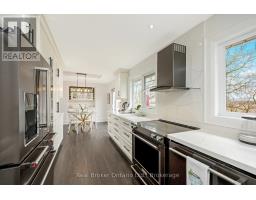 Stunningly renovated sidesplit in Hillsburgh with 2370 square feet of total living space to call home! A circular driveway leads to the elegant covered front entrance. The ground floor features a primary bedroom with a luxurious 3-piece ensuite, laundry, office, and a powder room. The bright main floor boasts a living room with a picture window, a dining area with a walkout to a spacious raised deck, and a kitchen with modern finishes and appliances.Upstairs, you'll find three generously sized bedrooms and a 5-piece bathroom. The finished basement, with its separate entrance, offers an open-concept kitchen and living room complete with a wood-burning fireplace, a bathroom, and an additional bedroom.Outside, a large detached garage provides parking for up to six cars, while the backyard, surrounded by trees, offers extra privacy. This home is the perfect blend of elegance and functionality! (id:46441)